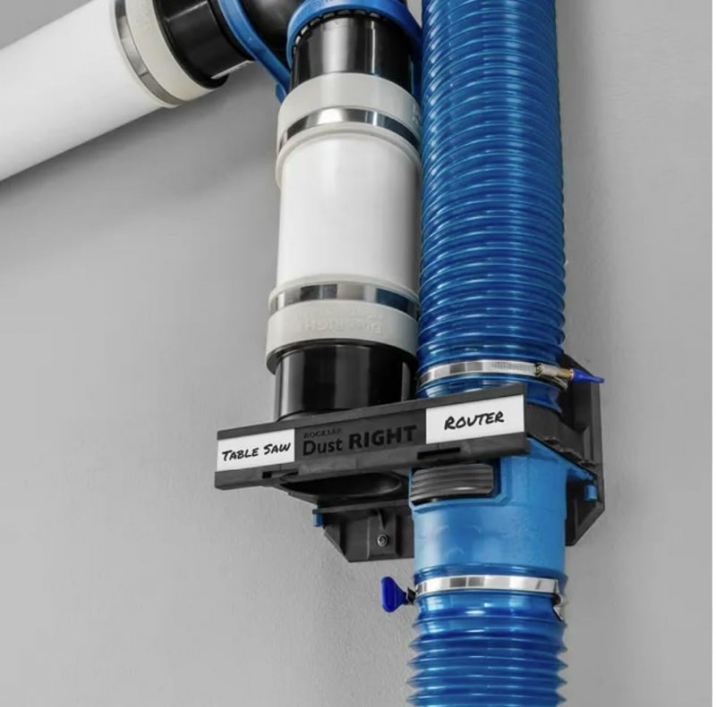 Makes it easy to switch 4'' dust collection from one tool to anotherStarter Kit includes sliding hose fitting. Add optional Extension Bases as needed to integrate all of your tools - starter kit includes alignment tabs allowing for easy installation of additional Extension bases. Helps maintain airflow efficiency because all suction is directed to one tool at a time. Mounts to wall, providing a central location from which to control the flow of air. No need to detach/reattach the hose; no need to open/close multiple blast gates. Single sliding port moves from side to side; spring-loaded stop clicks in place. End stops keep sliding port on track, and are removable for optional Extension Bases. Projection of mounting flange lines up with other available Ready-Mount fittings for easy connection, even with hard piping. All ports fit 4'' ID dust hose, and sliding port also fits Dust Right 4'' Quick Change Handle (#55027, sold separately) Each base includes two peel-and-stick labels to show which tools go to which ports. Ports provide ample room for attaching hose clamps (not included).Other fine products