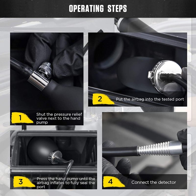 Universal Type: Automotive airbags reduce the workload of leak inspection, suitable for air intake and exhaust systems, universal type for automobiles. It has excellent sealing performance, softness, high temperature resistance, good elasticity and tear resistance.. Function: The hood airbag allows technicians to quickly and easily test the entire intake or exhaust system with high accuracy.. Sturdy and Durable: It is made of 100% new high-quality silicone material, which is wear-resistant and durable, not easy to be damaged, and has a long service life. It is very cost-effective.. Easy to Install and Use: It is very easy to install, no complicated tools are required to complete the installation, and it is easy to use, saving you time and effort..Other fine products