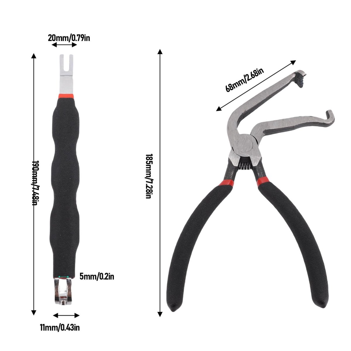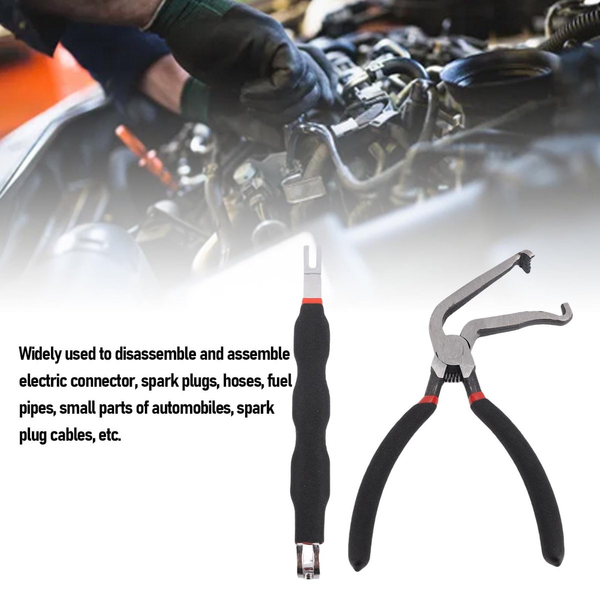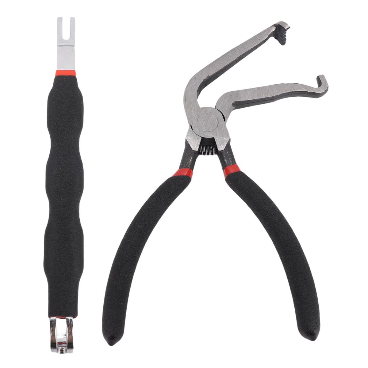 [Versatile Tool Kit] This two piece electrical disconnect pliers kit is designed for quick disconnection of electrical connectors, with a 60 angled disconnect plier and double-headed pry bar for various applications.. [Ergonomic Design] Ergonomically crafted with comfortable handles to reduce fatigue during prolonged use, ensuring ease and efficiency in completing tasks.. [Wide Application] Widely used for disassembling and assembling electric connectors, plugs, hoses, pipes, and small automobile parts, making it an essential part of any toolkit.. [Universal Use] These electrical disconnect pliers are suitable for all suvs, trucks, cars of any make, model, or year, providing a versatile solution for vehicle maintenance tasks.. [Premium Material] Made from high carbon steel through precision forging, these pliers offer exceptional hardness, durability, and can withstand tough work demands..Other fine products