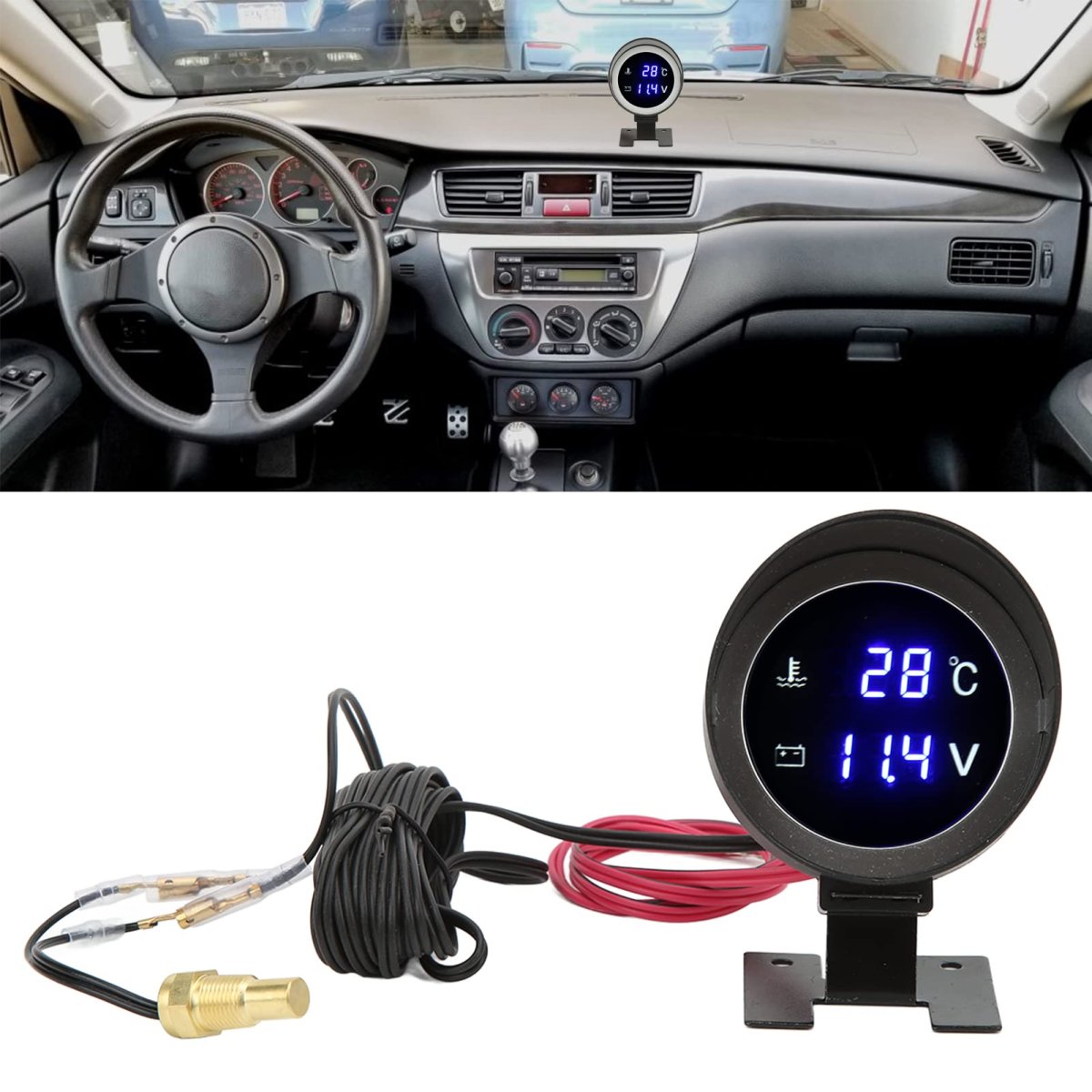 ACCURATE TEMPERATURE READINGS: This digital water temperature gauge provides accurate readings of the water temperature in your automotive, ensuring you're always aware of your engine's condition. MULTIFUNCTIONALITY: The LED meter on this water temperature gauge can also display your car's voltage, making it a useful all-in-one tool for monitoring your automotive's health. BLUE LED LIGHTING: The blue digital LED on this water temperature gauge ensures easy viewing from any angle, even in low light conditions. EASY INSTALLATION: With no modification required, this digital water temperature gauge is incredibly simple to install. Save time and energy by enjoying its benefits right away. DURABLE MATERIALS: Made with high-quality ABS and metal materials, this electrical water temperature gauge is built to last, making it a smart investment for any automotive enthusiast.Other fine products