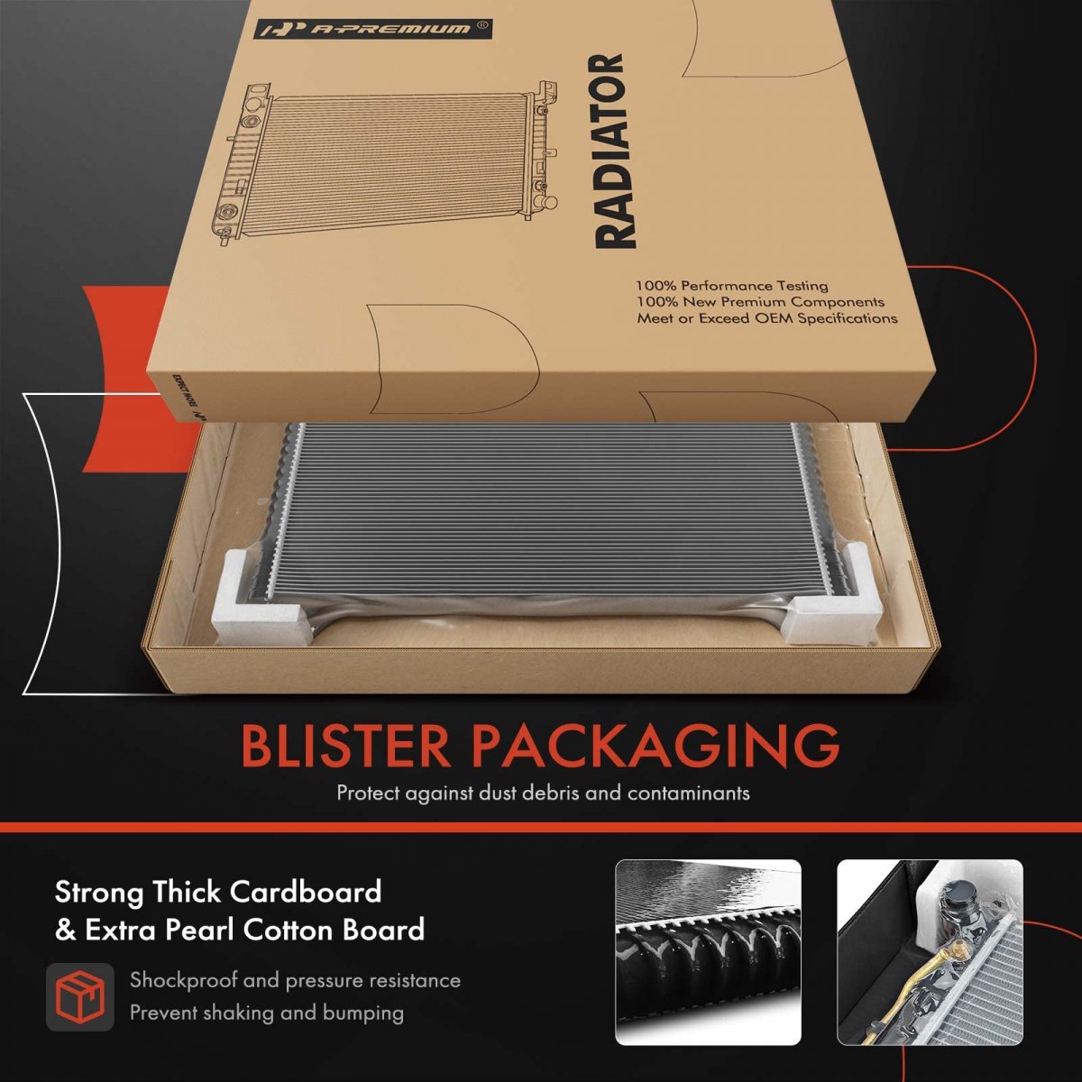 [Vehicle Fitment]: Compatible with Chevrolet Spark 2013-2013 L4 1.2L (Automatic Transmission), Spark 2014-2015 L4 1.2L (Automatic CVT Transmission), Spark EV 2014-2014 BATTERY EV (EV/BEV) (Automatic Transmission). [Reference Number]: 13342, 95423939, 95942346, GM3010561. [Specifications]: Transmission Oil Cooler Included: Yes; Engine Oil Cooler Included: No; Core Height: 16-36/61 inch; Core Thickness: 5/8 inch; Core Width: 17-5/7 inch; Inlet Diameter: 1-1/5 inch; Outlet Diameter: 1-1/5 inch. [Advantage]: A-Premium Radiator is manufactured and tested to the strictest standards for superior performance to restore the vehicle's cooling system performance to optimum operating condition..Other fine products