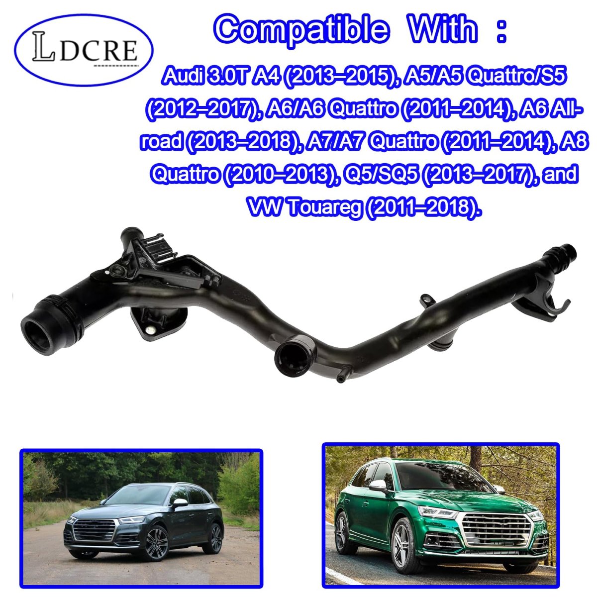 Compatible With: This radiator coolant pipe is compatible with Audi 3.0T A4 (20132015), A5/A5 Quattro/S5 (20122017), A6/A6 Quattro (20112014), A6 Allroad (20132018), A7/A7 Quattro (20112014), A8 Quattro (20102013), Q5/SQ5 (20132017), and VW Touareg (20112018).. Replace OE: This Coolant Hose Replaces part numbers 06E121045AA, 06E121045AJ, 06E121045AK, and 06E121045BB. Ensure correct fit by matching your original part number.. : This 06E121045AA Radiator Pipe Manufactured with durable heat-resistant plastic that can handle the high pressure and temperatures of coolant circulation. Avoids cracking and leaking.. Function: This Radiator Coolant Pipe Effectively connects the radiator system and coolant flow path, ensuring stable engine temperature and avoiding overheating in demanding driving conditions.. Package Include: 1 x Engine Coolant Radiator Pipe Water Hose. Direct replacement with no modifications required..Other fine products