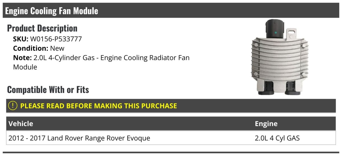 - Engine Cooling Radiator Fan Module For 2012-2017 Land Rover Range Evoque 2 0l 4-cylinder Gas