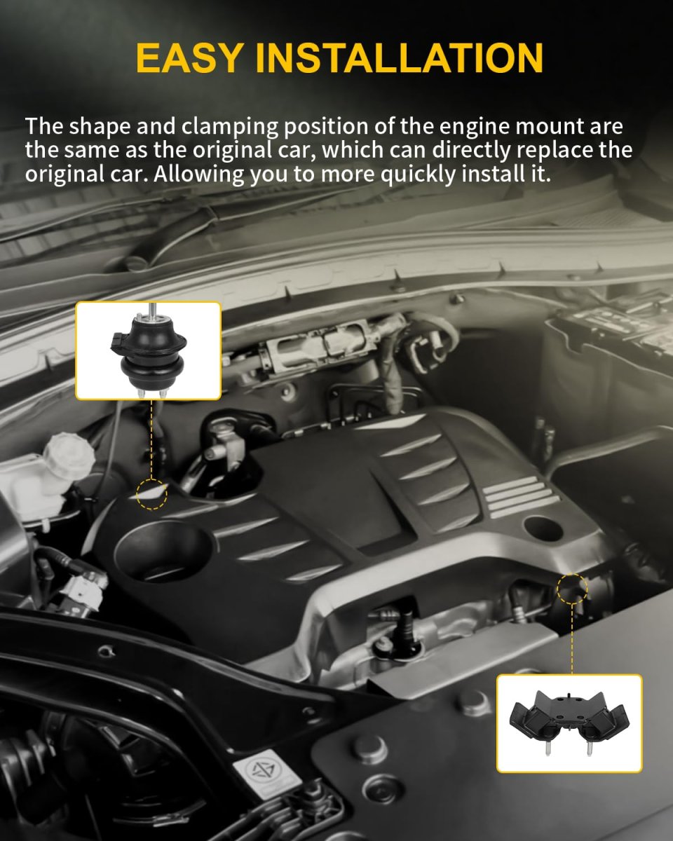 Superior Engine Support: Our Engine Motor Mount offers exceptional support and stability, ensuring optimal performance and minimal vibrations for a smooth driving experience. Engine Motor Mount and Transmission Mount Set Compatible For Lexus GS300 1998-2005 L6 3.0L, IS300 2001-2005 L6 3.0L (Automatic Transmission). Durable And Reliable: Built to withstand the demands of everyday driving, our motor mount is made from durable materials, ensuring long-lasting strength and reliable engine support. By reducing vibrations and minimizing noise, our engine mount enhances your driving experience, providing a smoother and quieter ride. OE Number: A4235, A4235HY, A7294, 9663, 9684, EM5921, EM5144, 12361-46190, 12371-50010. Universal Compatibility: Our engine mount bracket is universally compatible for Lexus GS300 3.0L 1998-2005, for Lexus IS300 3.0L 2001-2005, ensuring fit and optimal performance for your vehicle. Easy Installation: Our Engine Motor Mount and Transmission Mount Set is designed for easy and hassle-free installation, allowing you to quickly and confidently install it without specialized tools or professional assistance. What You Get: Buy with confidence and enjoy worry-free driving! Package Included: 1 x Front Left Motor Mount(A4235, A4235HY, 9663, EM5921), 1 x Front Right Motor Mount(A4235, A4235HY, 9663, EM5921), 1 x Front Transsmission Mount(A7294, 9684, EM5144, 12361-46190, 12371-50010).Other fine products