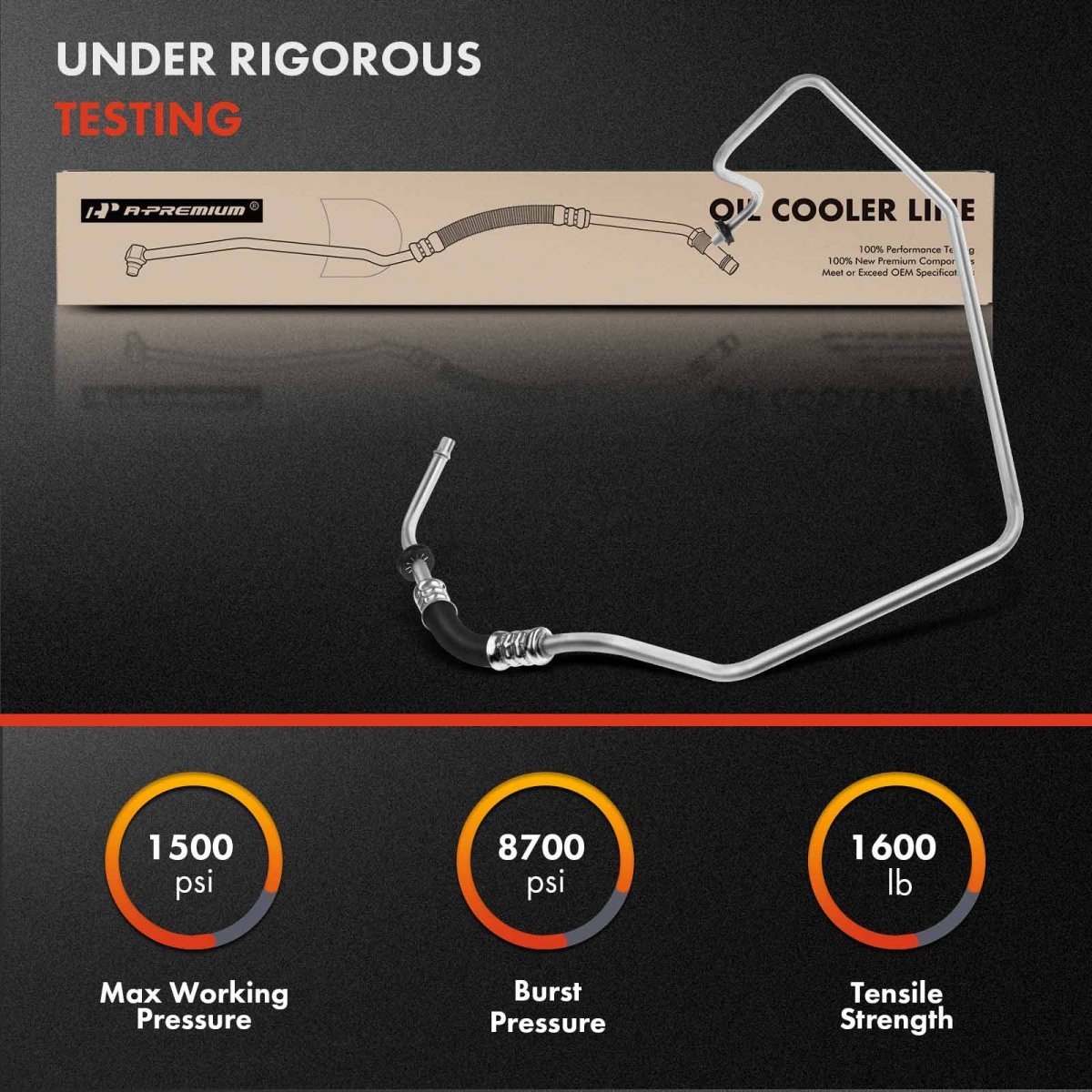 Vehicle FitmentCompatible with Chrysler 300M 1999-2004 V63.5L, Concorde 1998-2001 V63.2L, Concorde 2002-2004 V63.5L, LHS 1999-2001 V63.5L; Compatible with Dodge Intrepid 1998-2000 V63.2L, Intrepid 2000-2004 V63.5L---Inlet. Reference NumberThe A-Premium engine oil cooler line's reference number: 625-400, 625400, 5801285, 4698779AC. Before placing an order, verify that the part is compatible with your vehicle using the compatibility system.. Durable constructionThis oil cooler line is made of durable, corrosion-resistant material for reliable, leak-free performance. SpecificationMaterial: Rubber/Metal; Gasket or Seal Included: No; Length: 43 inch; Fitment Type: Direct Replacement.Other fine products