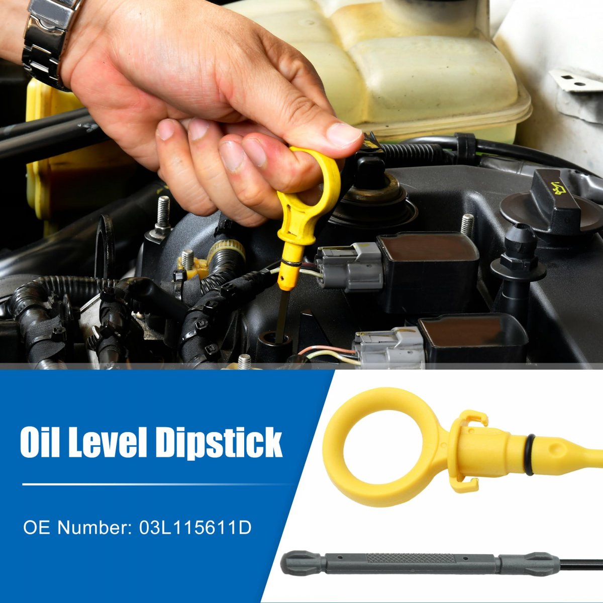 OE Number:03L115611D.. Fitment: for Transporter 2010-2017.. Function: An engine oil dipstick serves as a gauge to check both the level of oil in your vehicle.. How to Use: 1.Turn off the ignition and wait for the engine to cool down; 2.Pull the dipstick out. Make sure that the cloth is kept below it so that the oil does not fall on your vehicles engine or yourself; 3.Wipe the dipstick gently using a paper towel or tissue paper or any clean cloth; 4.Insert the dipstick back into the tube from where you had pulled it out; 5.Pull the dipstick out again as you did previously and inspect it for the oil level..Other fine products