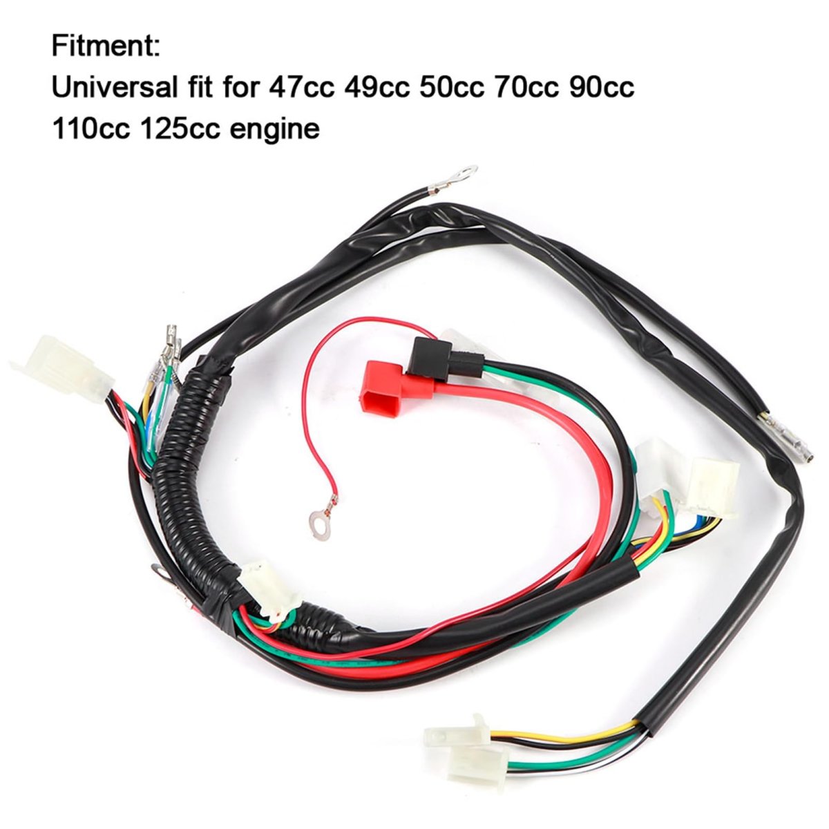 WIDE VEHICLE COMPATIBILITY: Versatile and efficient, this start harness can be used for Pit Bike Motorcycle, ATV, Quad in the ranges of 70cc, 90cc, 110cc, and 125cc, ensuring a snug and secure fit.. IDEAL FOR ELECTRIC START ENGINES: Perfectly designed for use with electric start engines that have a battery. This start harness ensures smooth and efficient of your engine, enhancing its overall performance.. SECURE CONNECTIONS: This electric engine start harness provides secure connections for essential components. It connects to CDI, rectifier, solenoid, key, stop button, starter motor & battery, making it an integral part of your engine system.. EXCLUDES LIGHTING WIRING: This start harness comes without lighting wiring, resulting in a streamlined design with better performance. Ensure your vehicle's electrical system runs smoothly with our start harness.. UNIVERSAL FIT: Offering universal compatibility, this start harness fits 47cc, 49cc, 50cc, 70cc, 90cc, 110cc, and engines. Its versatile design makes it ideal for a wide range of motor vehicles..Other fine products