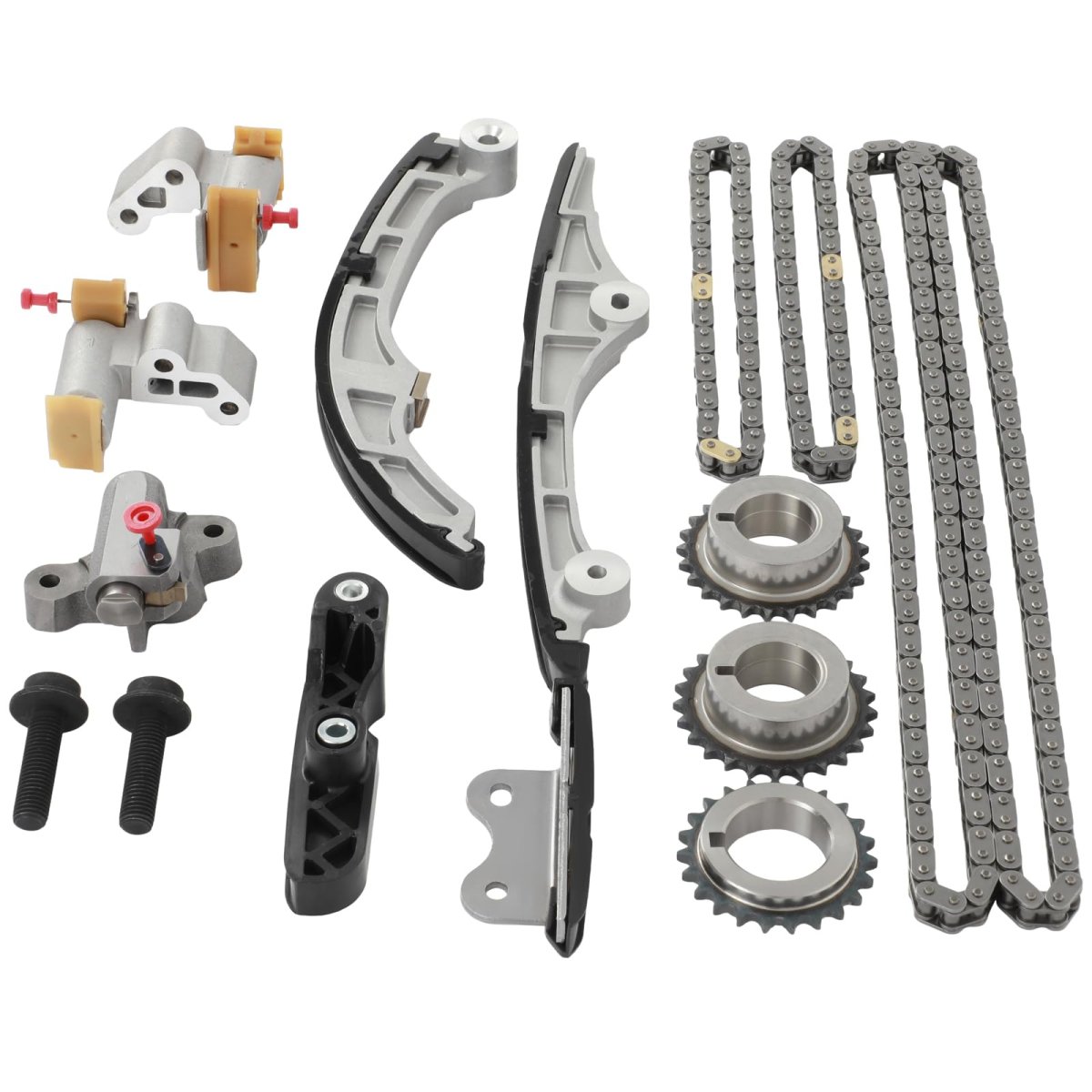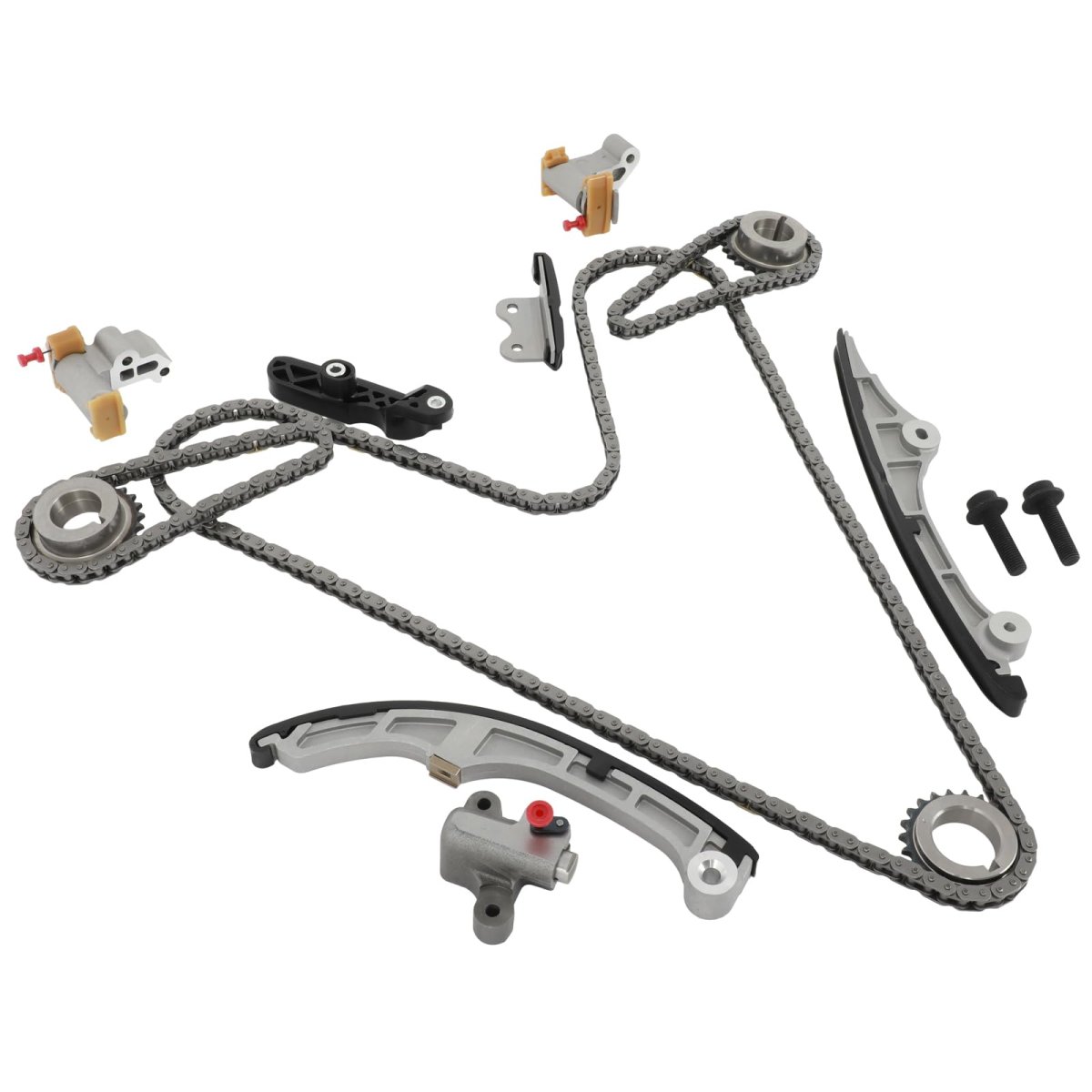 Vehicle Fitment: Compatible with 2007-2010 for Ford Edge 3.5L,2009-2011 for Ford Flex 3.5L,2010 for Ford Fusion 3.5L,2008-2011 for Ford Taurus 3.5L,2008-2009 for Ford Taurus X 3.5L,2010-2011 for Lincoln MKS 3.5L,2009-2011 for Lincoln MKS 3.7L,2010-2011 for Lincoln MKT 3.5L,2010-2011 for Lincoln MKT 3.7L,2007-2010 for Lincoln MKX 3.5L,2007-2010 for Lincoln MKZ 3.5L,2009-2011 for Mazda 6 3.7L,2007 for Mazda CX-9 3.5L,2008-2011 for Mazda CX-9 3.7L,2008-2009 for Mercury Sable 3.5L. Replaces Part: 7T4Z6268A,7T4Z6268CA,7T4Z6K254BA,7T4Z6B274A,7T4Z6K297AA,7T4Z6M256A,7T4Z6K254B,7T4Z6K254AA,7T4Z6K255AA,7T4Z6306A,7T4Z6256A,9-4226S. What You Get: 1x Timing Chain (Center),2x Timing Chain (Upper),1x Timing Chain (Left Upper),1x Timing Chain Guide (Left Lower),1x Timing Chain Guide (Left Upper),1x Timing Chain Guide (Right Upper),1x Timing Chain Tensioner (Right Lower),1x Timing Chain Tensioner (Right Upper),1x Timing Tensioner (Arm Right),1x Timing Crank Sprocket (Outer),2x Timing Sprocket (Front).Other fine products