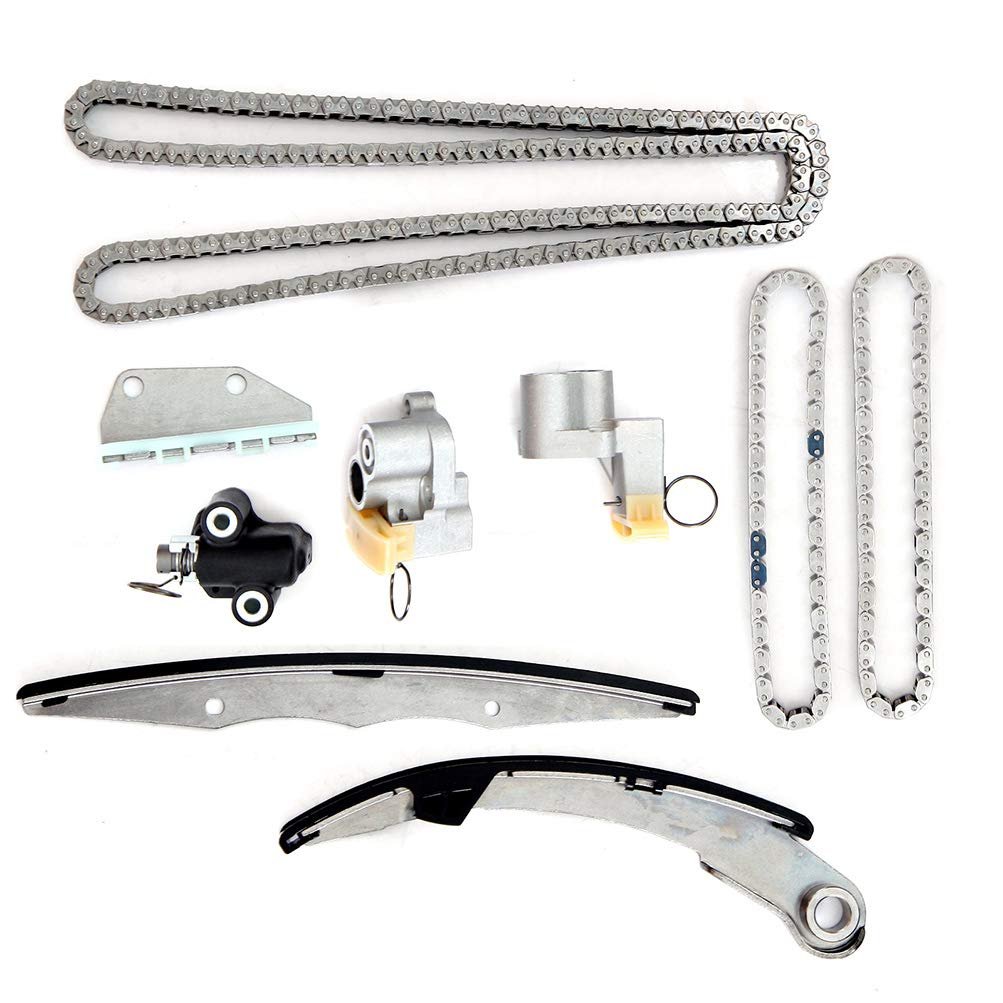 Vehicle Fitment: Compatible with 2005-2009 for Nissan Frontier 4.0L,2005-2009 for Nissan Pathfinder 4.0L,2005-2009 for Nissan Xterra 4.0L,2009-2012 for Suzuki Equator 4.0L. Replaces Part: TKNI042,TK10670,TK3042,13024-7Y000,13025-EA22A,13021-7Y000,13028-ZK01C,13028-ZS00A,13091-ZK00A,13085-EA200,13085-EA210,13070-EA200,13070-ZK01B,13070-ZK01A. What You Get: 1x Timing Chain (210 links-lower),2x Timing Chains (upper),Gears and Sprockets are NOT included,1x Guide Rail (tensioner arm),1x Guide Rail (top - fixed),1x Guide Rail (left - fixed),1x Tensioner (lower),1x Tensioner (upper - left),1x Tensioner (upper - right).Other fine products