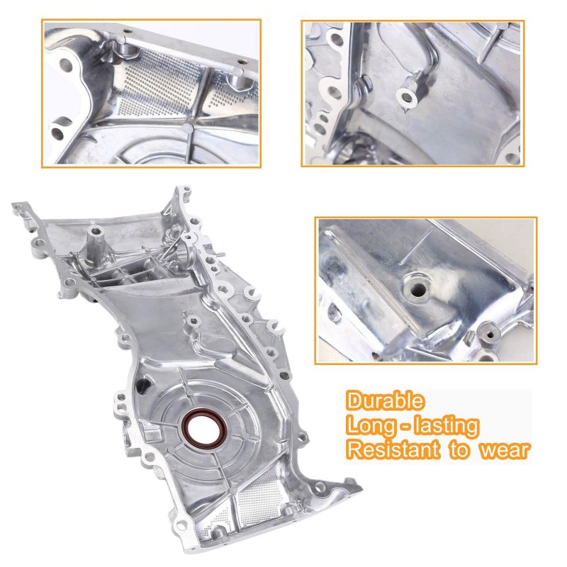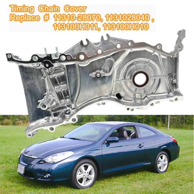 [Compatible]: Engine Timing Cover is Specifically designed to fit 2001-2011 Toyota Camry, Highlander, and Solara models with a 2.4L 2AZFE engine, ensuring a perfect fit and optimal performance.. []: Crafted from premium materials and built to meet or exceed OEM specifications, this engine timing cover is durable, long-lasting, and resistant to wear, ensuring excellent performance and engine protection.. [Function]: The timing chain cover plays a crucial role in protecting the timing chain and associated components, preventing dirt and debris from causing damage and ensuring precise timing and engine operation.. [Package include ]: 1 x Engine Timing Cover.Other fine products