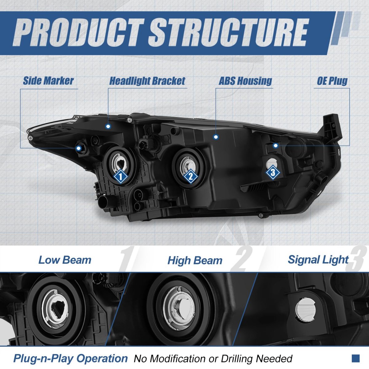 Vehicle Compatibility - Headlight assembly compatible with Nissan Kicks 2018-2020.. Improve Visibility and Appearance - Come with [1] driver left side headlight with turn signal, can replace the old or damaged headlamp for upgrade appearance of vehicle with a visually striking presence, and help to improve the brightness, allowing you see the road clearly at night or in extreme weather.. Product Specifics - Bulb Type: Halogen Beam Type: Reflector High / Low Beam Bulb Model: H9 High / H11 Low Beam (NOT Included) Signal Light: 3457NA (Not Included) Side Marker: 194 (Not Included) Housing Color: Chrome Lens Color: Clear OEM Part Number: 260605RL0A.Other fine products