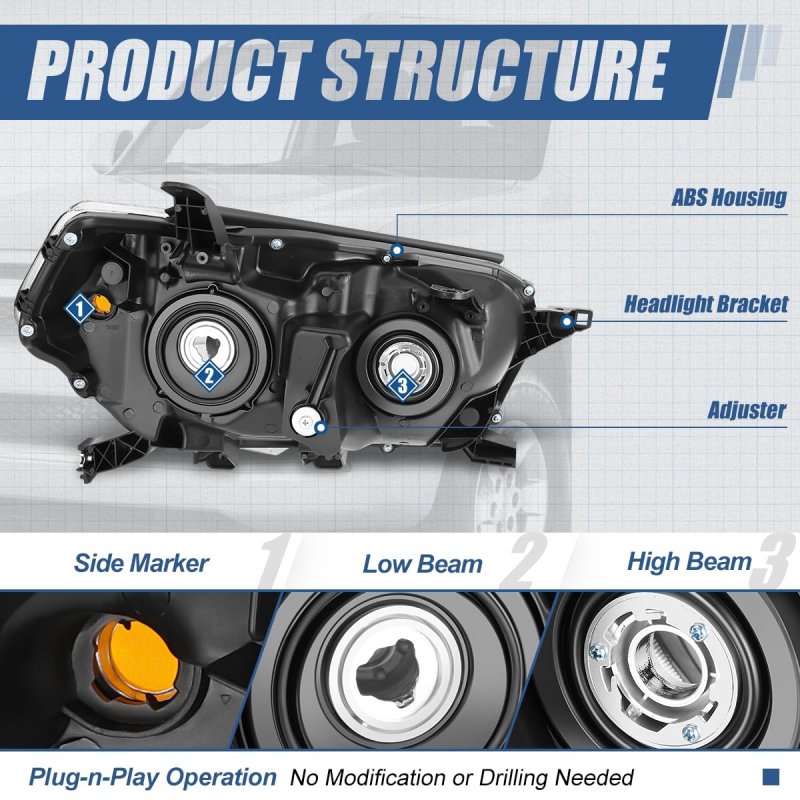 - Factory Style Halogen Headlight Lamp For Toyota 4runner Limited Sr5 2010-2013 Driver Left Side Chrome Housing Amber Corner