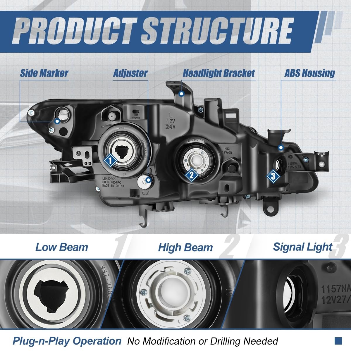 Vehicle Compatibility - Headlight assembly compatible with Nissan Murano 2009-2014.. Improve Visibility and Appearance - Come with set of [2] headlights with turn signal (Driver and Passenger Side), can replace the old or damaged headlamp for upgrade appearance of vehicle with a visually striking presence and help to improve the brightness, allowing you see the road clearly at night or in extreme weather.. Product Specifics - Bulb Type: Halogen Beam Type: Reflector High / Projector Low Beam Bulb Model: 9005 High / H11 Low Beam (NOT Included) Signal Light: 1157NA (Not Included) Side Marker: 194 (NOT Included) Housing Color: Black Lens Color: Clear Weight: 14 LBS OEM Part Number: 260601AA0A 260601AA0D 260101AA0A 260101AA0D.Other fine products