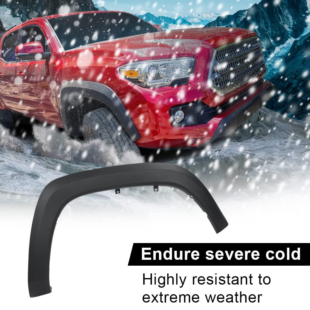 COMPATIBILITY: Fender Flares Compatible with Toyota Tacoma 2016 2017 2018 2019 2020 2021.. HAVE DUTY: G-PLUS Fender Flares made of impact-resistant polypropylene with well-developed injection molding technology(NOT Cheap ABS in the Market).. ACKAGE INCLUDING: 1PC Fender flare (Right); Comes with bolts, nuts and all necessary mounting hardware for installation.. ROBUST & DURABLE: Effectively protects vehicle and tires from mud, scratches, sand and other external damage.. EASY TO INSTALL: Fender flares removal are required prior to installation. Mounting Instruction & Hardware included on package..Other fine products