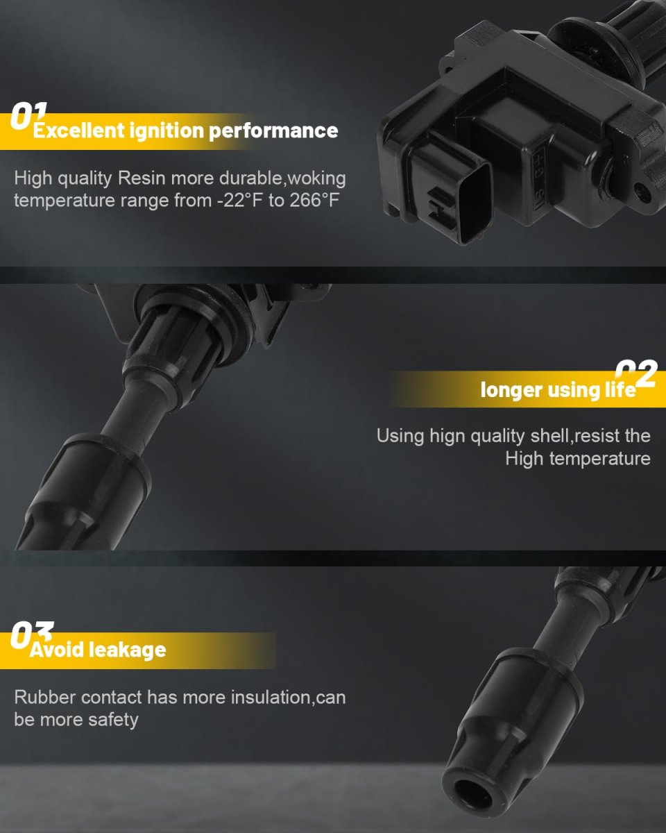 [Compatible with]: for INFINITI Q45 1997-2001. [Replace Part Number]: Ignition Coil Packs x8, Double Iridium Spark Plug x8, ReplaceUF282, 224483H000, 2382, 04887031, 1881411051, 2240185E15, 5861217490, BKR5ES11. [Durable & Reliable]: Our ignition coils are made from high-quality materials, including imported copper wire and alloy steel, which provide excellent conductivity and resistance to corrosion. This ensures stable high-voltage output and long-lasting performance under extreme conditions. [Enhanced Features for Faster Starts]: The included double iridium spark plugs offer refined center electrode technology to maximize spark energy, improving ignitibility and ensuring smoother engine operation without worrying about misfires. This upgrade contributes to a more efficient fuel combustion process. [Restore Engine Efficiency]: Designed as direct replacements, these ignition coils address common issues like poor gas mileage, engine misfires, rough idling, and check engine lights. By replacing faulty coils, you can enhance drivability and restore your vehicle's performance.Other fine products