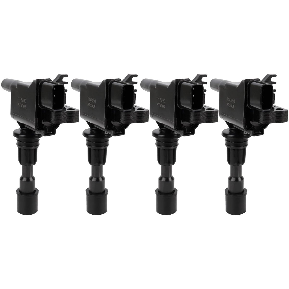 [Vehicle Fitment]: Compatible for Mazda Miata 1.8L 2001-2005. [OCPTY IGNITION COIL PACK]: Is your car experiencing rough idling or misfires? Does it struggle with poor acceleration and excessive fuel consumption? These symptoms often indicate failing ignition coils or worn spark plugs. A faulty coil pack can drastically reduce engine performance, cause hard starts, and even damage other parts like the catalytic converter. Though compact, ignition coil packs play a critical role in your vehicle's combustion system. [DURABLE & RELIABLE]: Our ignition coil packs are crafted with premium automotive replacement ignition coil materials, featuring high-grade copper windings and alloy steel cores for superior conductivity and corrosion resistance. This coil pack set delivers consistent high-voltage output and extended durability even in harsh engine environments. [PRECISION ENGINEERED]: Designed for ignition coil reliability, engine coil efficiency, and coil pack performance, exceeds OEM standards. Each ignition coil pack ensures seamless compatibility with factory parts, delivering dependable automotive replacement ignition coils. Package includes: ignition coil set x 4.Other fine products