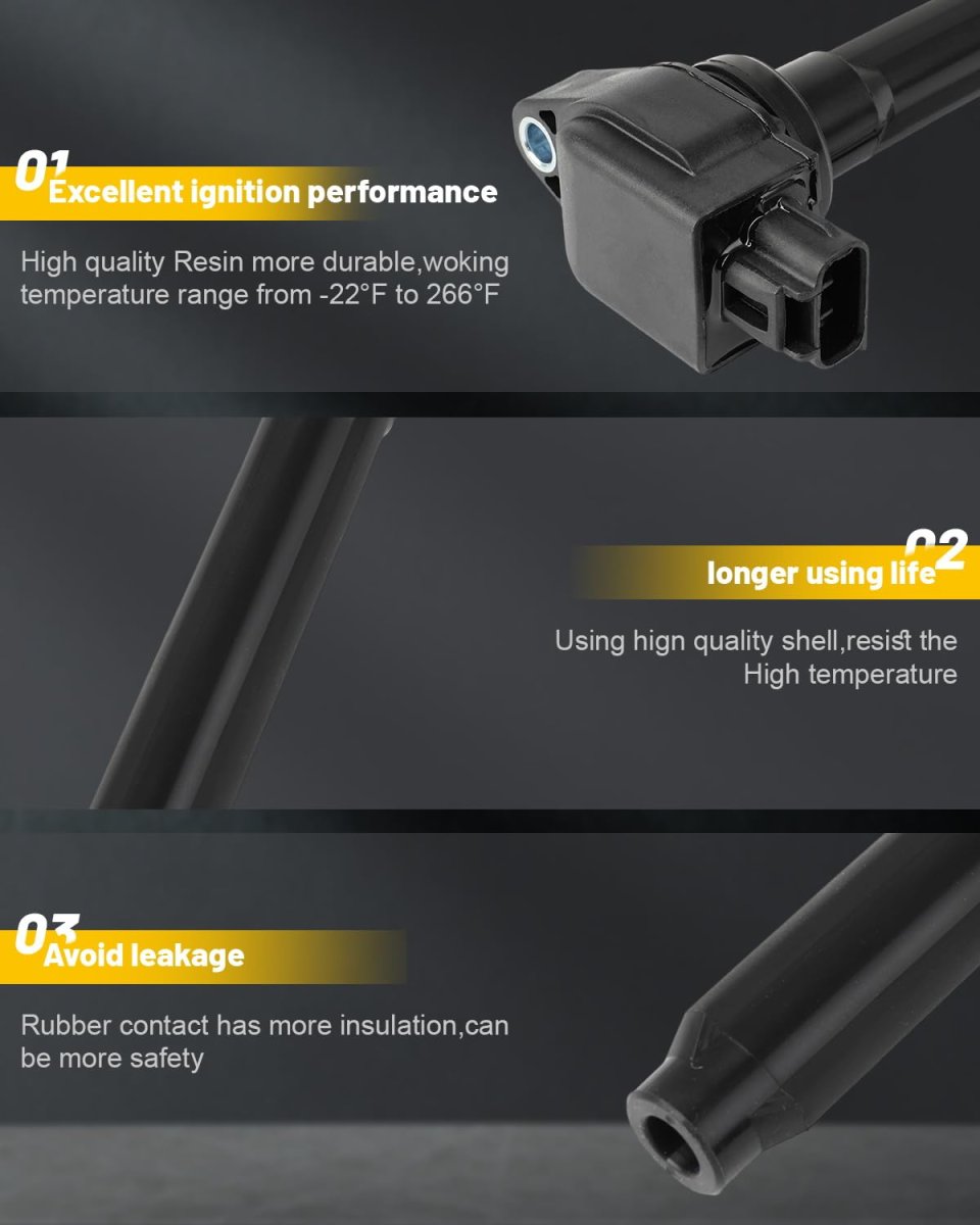 [VEHICLES FIT]: Fits 2018-2023 for Mitsubishi Eclipse Cross 1.5L/L4,. [OCPTY IGNITION COIL PACK]: Is your car experiencing rough idling or misfires? Does it struggle with poor acceleration and excessive fuel consumption? These symptoms often indicate failing ignition coils or worn spark plugs. A faulty coil pack can drastically reduce engine performance, cause hard starts, and even damage other parts like the catalytic converter. Though compact, ignition coil packs play a critical role in your vehicle's combustion system. [DURABLE & RELIABLE]: OCPTY ignition coil packs are crafted with premium automotive replacement ignition coil materials, featuring high-grade copper windings and alloy steel cores for superior conductivity and corrosion resistance. This coil pack set delivers consistent high-voltage output and extended durability even in harsh engine environments.Other fine products