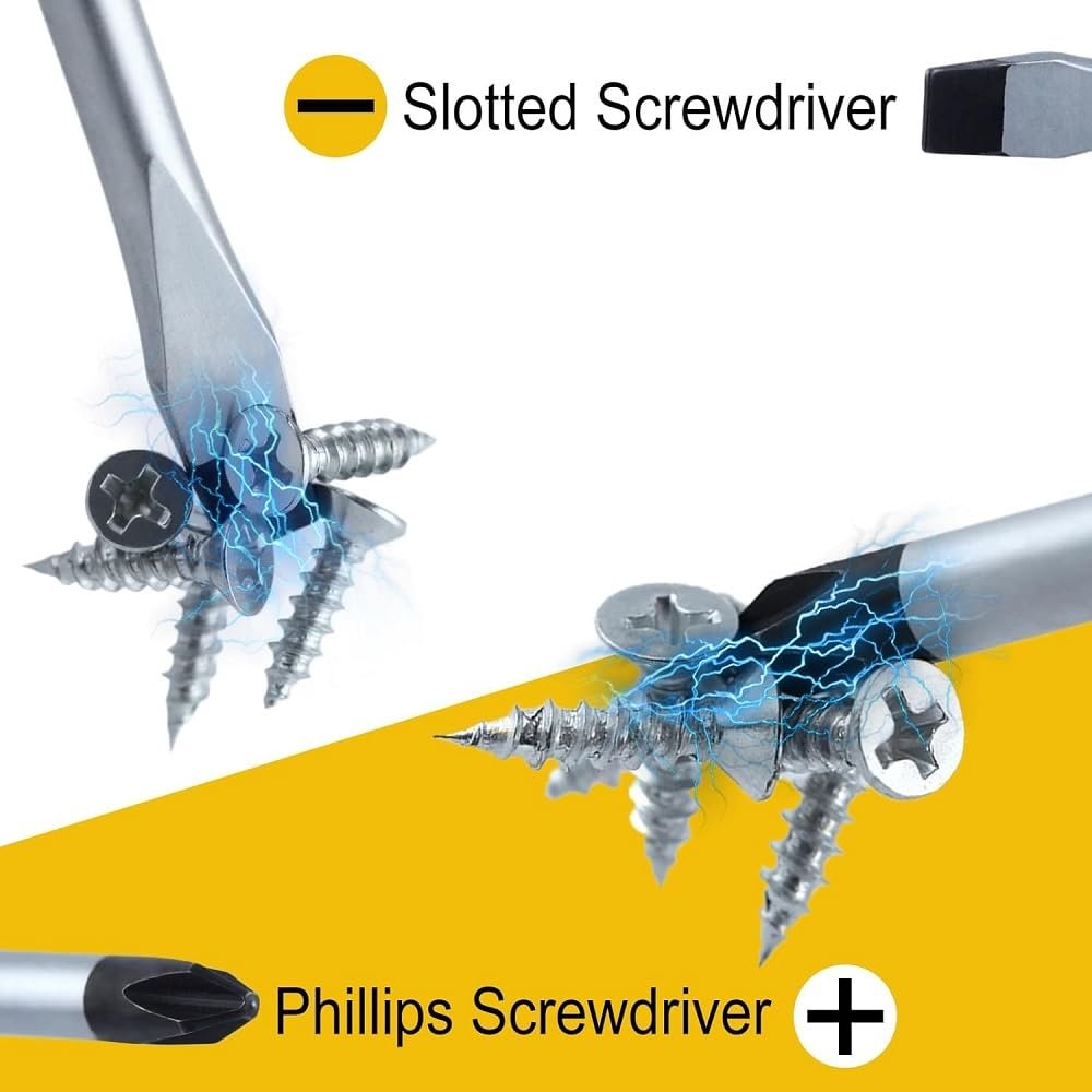 Versatile Screwdriver SetThis precision set contains the most commonly used 3 slotted screwdrivers (1/8"*3", 3/16"*4", 1/4"*5") and 3 phillips screwdrivers (PH0*3", PH1*4", PH2*5"). It's designed to effortlessly handle a variety of tasks, from assembling furniture to repairing electronics.. Magnetic TipAttracts screws easily and tightly. Blackening treatment effectively prevents rust and reduce cam-out.. Superior MaterialMade of Chrome-Vanadium Steel for enhanced durability, rust resistant and anti-corrosion.. Ergonomic HandleNon-slip and soft handle provides you a comfortable hold as well as maximum control at work. Handle slot accepts other screwdrivers for added leverage.. Wide ApplicationDesigned for a wide variety of projects and repairs in domestic appliances, furniture, automotive, factory..Other fine products