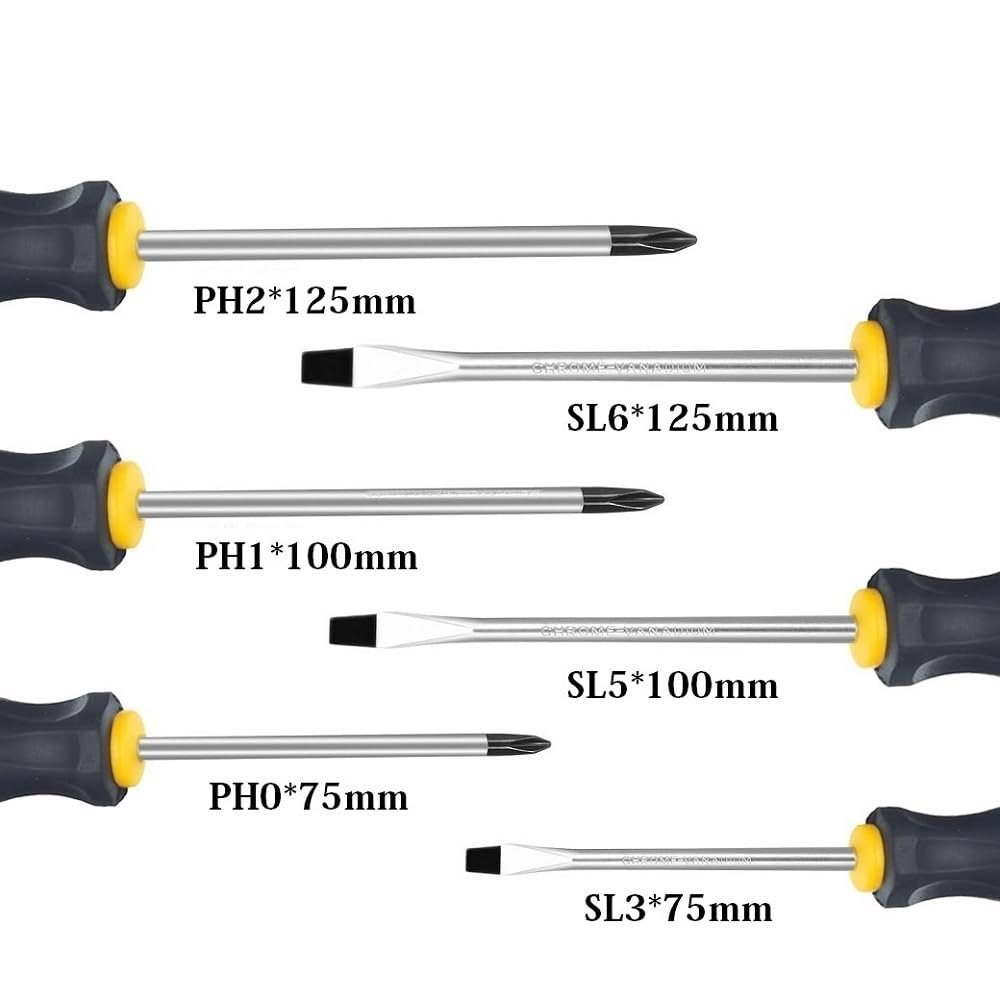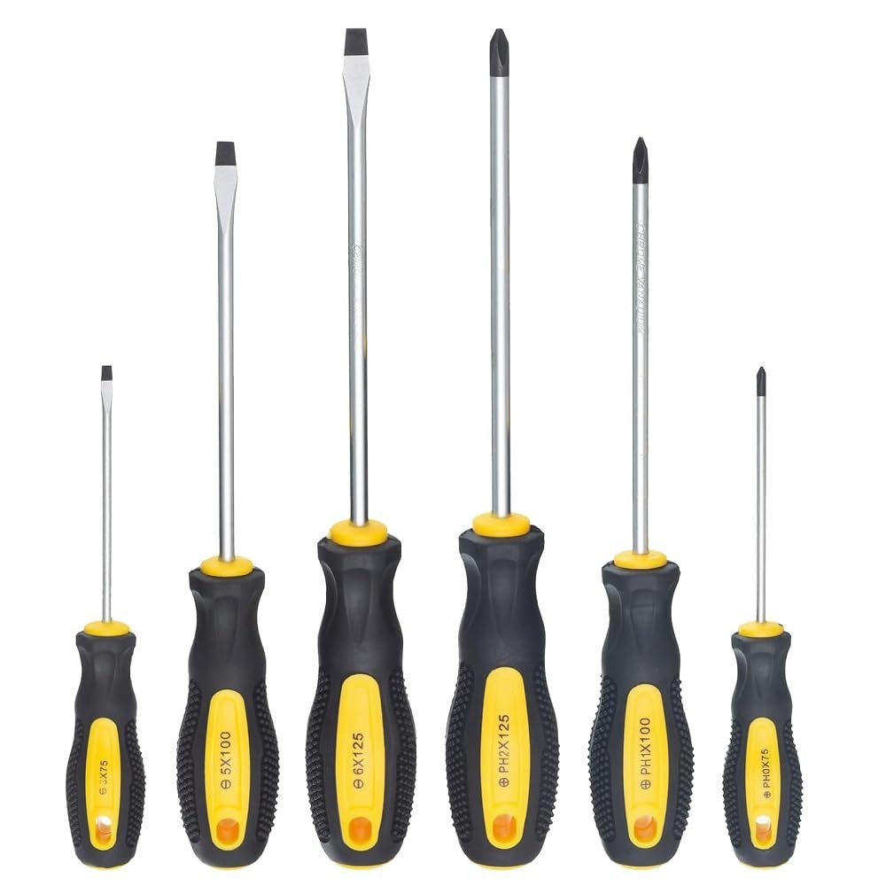 - Fixinus 6-piece Magnetic Screwdriver Set 3 Phillips And Flat Professional Cushion Grip Repair Hand Tool