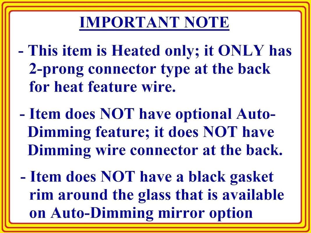 Heated FLAT glass compliant to US / Canada regulations for driver side. Backing plate attached, clips directly on the motor Mount.. Diagonal Measure (Longest): 7 7/8 inch = 20 cm. Longest diagonal dimension provided is the longest size of the glass in any direction, normally longest top to opposite bottom corners measurement.. Aftermarket mirror that is similar to OEM look and features..Other fine products