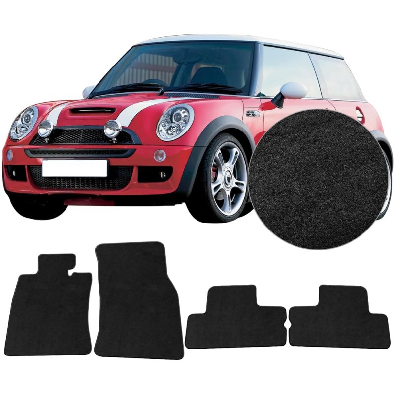 Compatible with 2002 2003 2004 2005 2006 Mini Cooper Convertible 2-Door & Hatchback 2-Door (Base, Checkmate, Chili, Luxury, Park Lane, Pepper, S Checkmate, S Chili, S, S Hot Chili, S Park Lane, S Salt, Salt, Seven, Sport). Material: Nylon Color:Black. Package Includes: 1x Set of Floor Mats (4PCS). Instructions NOT included, Professional Installation is Highly Recommended..Other fine products