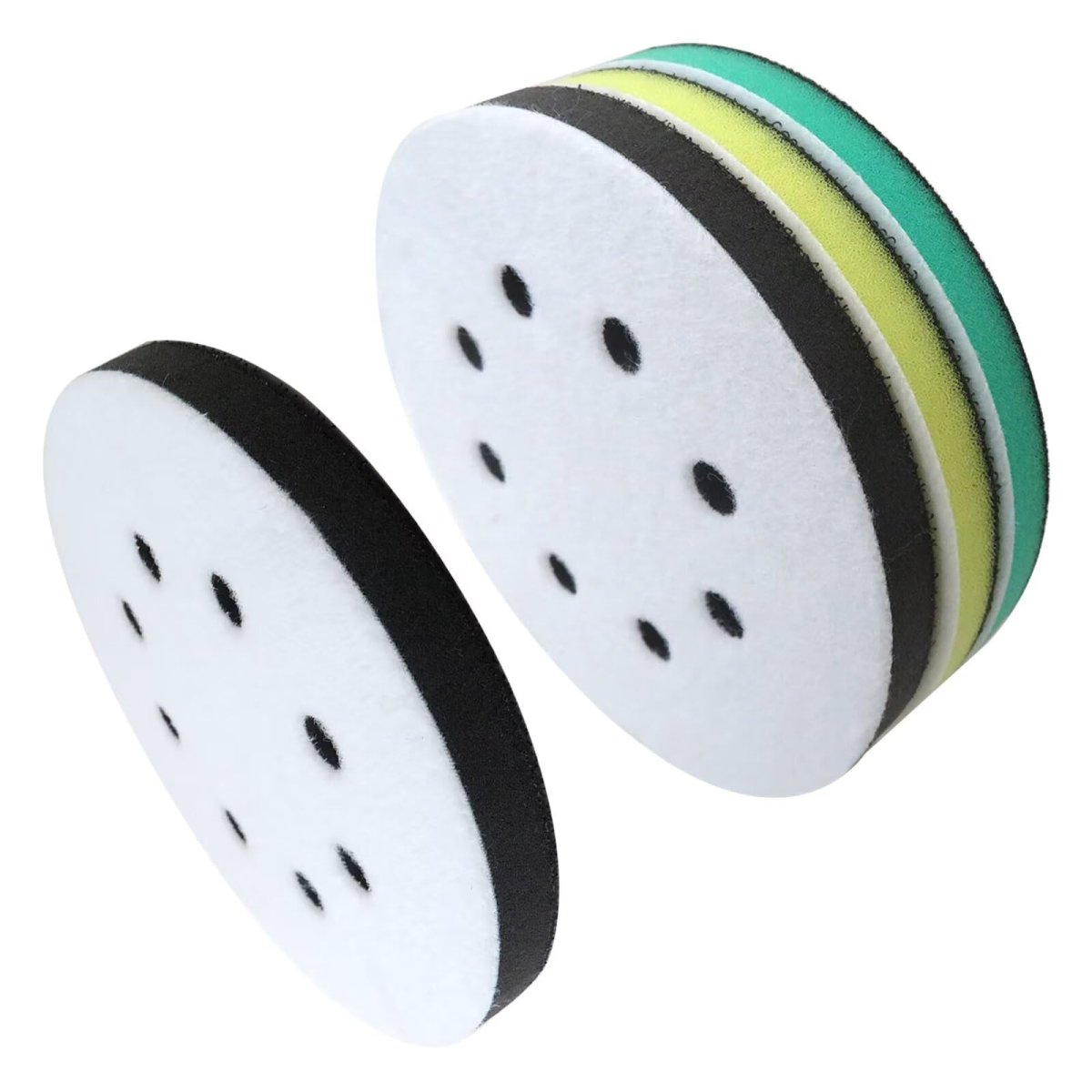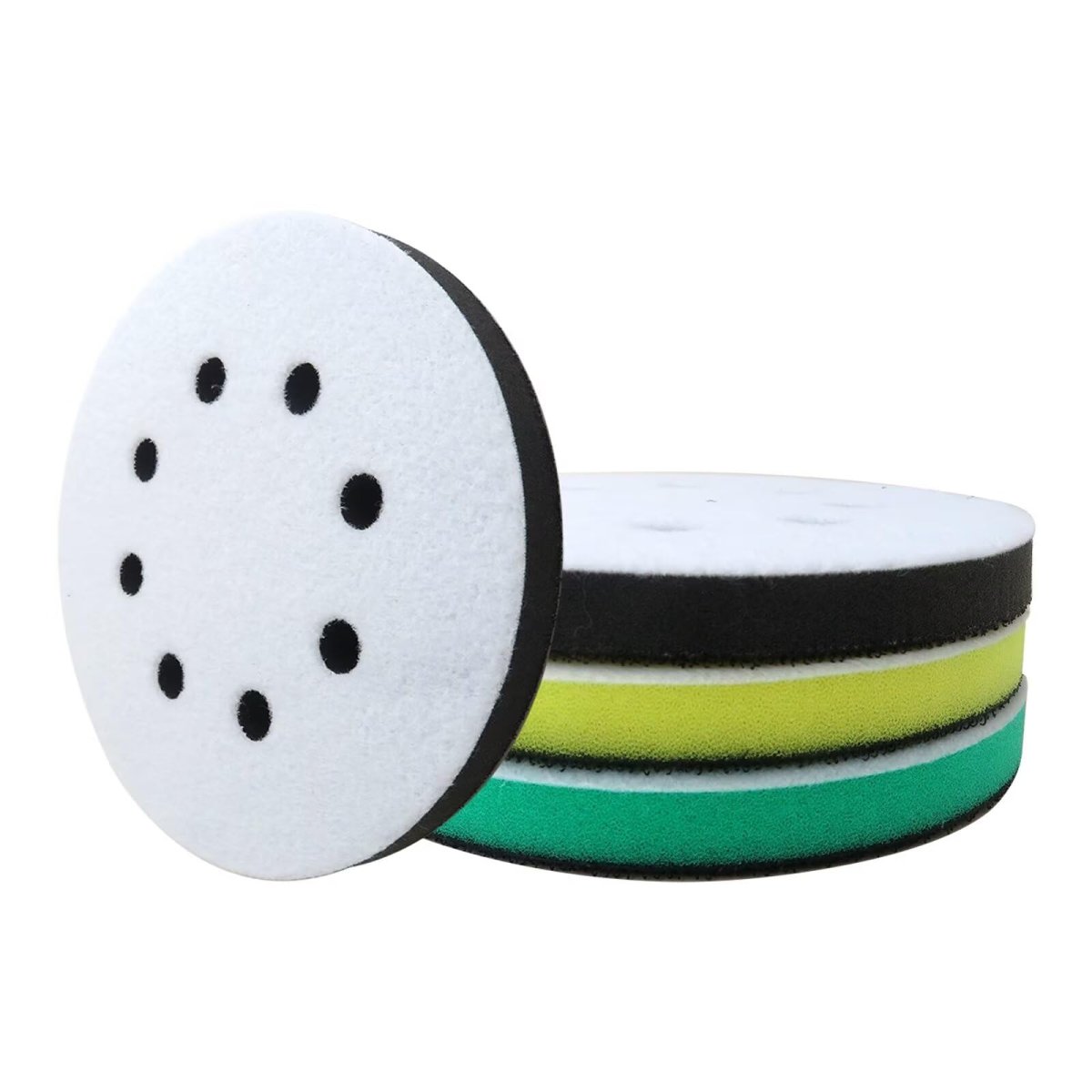 Feature: Dual-sided with hook and loop and soft sponge cushion for easy sanding disc attachment, offering firm adhesion for stability. 8 hole foam sand cushion, efficient dust removal, ensure smooth working. Reliable Material: Soft, high-quality orbital sander foam pad can enhance mobility, minimize the risk of material burning through and improve polishing effectiveness. 3 Different Hardness: 5-inch foam sand pads, suitable for orbital sander, with 3 different hardness options for cutting and finishing. Stackable black pads can increase versatility. Choose the right hardness for optimal sanding.Other fine products