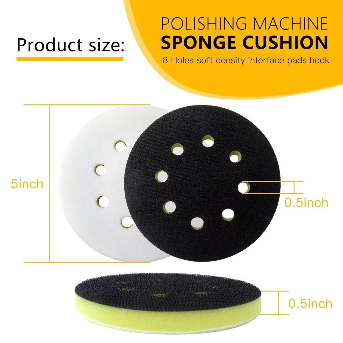 - Foam Sanding Pads Suitable For Orbital Sander 5 Inch 8 Holes Pad Set Hook And Loop Soft Density Interface With Hard Cushion