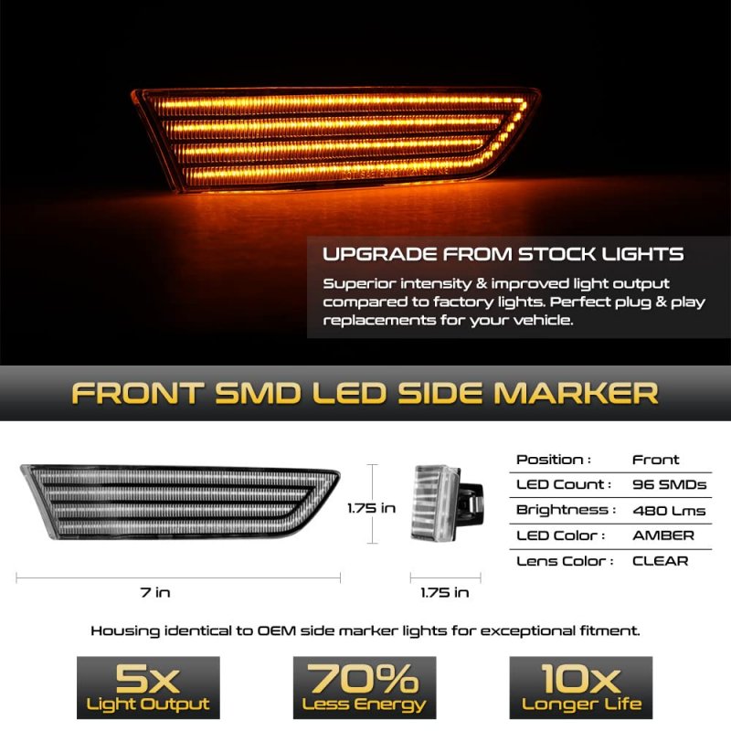 [Package Content] - Include Driver and Passenger Side Complete Set (2-Pieces) Pair In Box; You only need to add 1 quantity to cart. [Premium LED Technology] - Designed with Powerful LEDs to be Visually Striking and Enhance Visibility. [Fully Plug & Play Ready] - Simply Remove Original Housing with T10 Bulbs & Connect The Plug to the Socket. Twist to Lock the Housing and Push Back on the Side Fender. Done.. [SAE Approved & DOT Certified] - This Assembly is 100% Street Legal. It Meets All Regulatory Requirements In USA & Canada..Other fine products