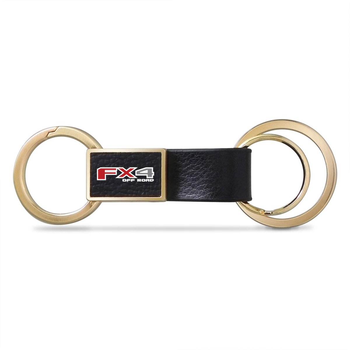 - Ford F150 Fx4 Off Road Black Leather Insert Golden Metal Strap Premium Key Chain