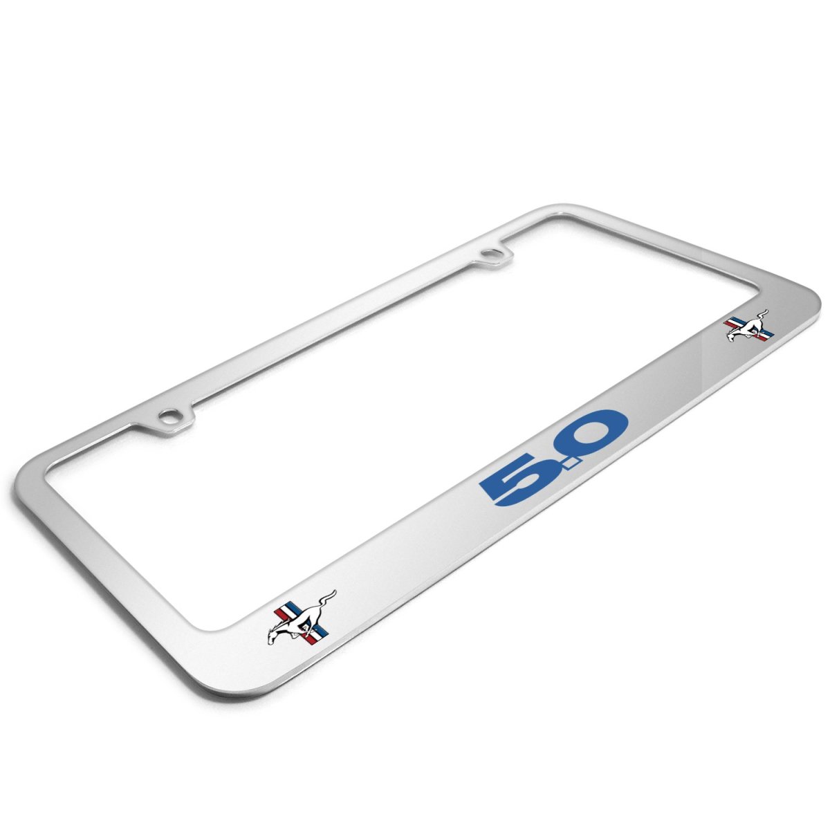 - Ford Mustang 5 0 Blue Dual Logo In 3d On Mirror Chrome Metal License Plate Frame Official Licensed