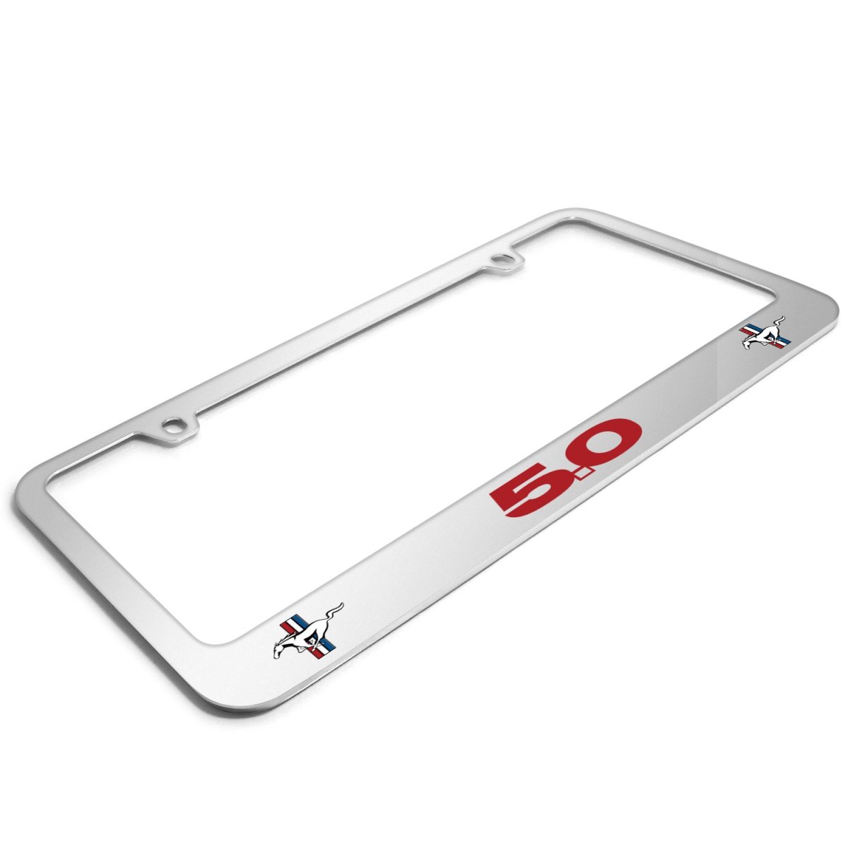 - Ford Mustang 5 0 Red Dual Logo In 3d On Mirror Chrome Metal License Plate Frame Official Licensed
