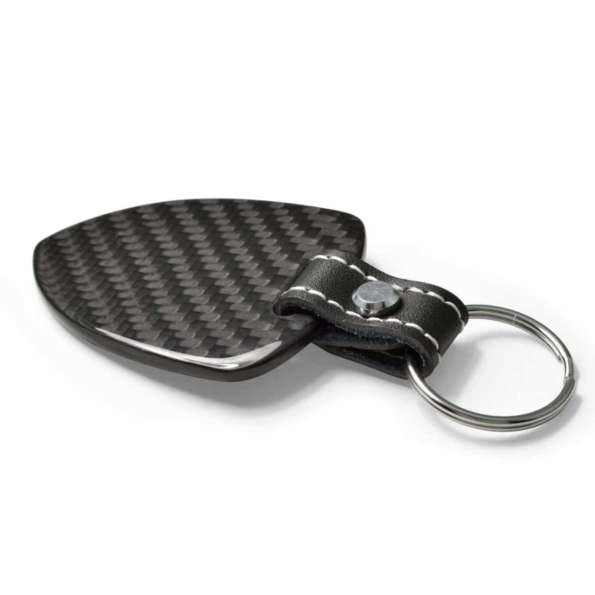 Fashion with style. One-piece black natural 3K carbon fiber design has an elegant look from every angle.. Top grade soft genuine black leather strap with a split key ring for easy attach and release keys.. Printed full-color UV resistant OEM style car logo graphic on one side.. The pendant size: 2-1/4" x 1-3/4", overall length is about 3-3/4". Perfect gift for you or a loved one.. official licensed product made by iPick Image, LLC.Other fine products