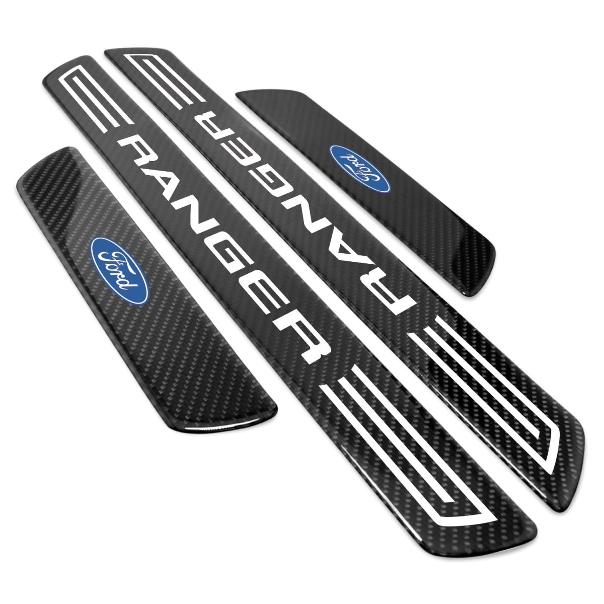 - Ford Ranger X-large Black Real Carbon Fiber 4 Pcs Universal Door Sill Step Protector Guard Decal Plates