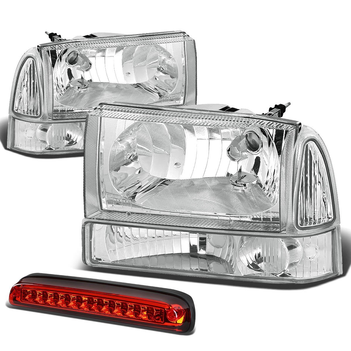 - Ford Super Duty 1st Gen Pair Of Chrome Clear Corner Headlight Red Led 3rd Brake Light W O Cargo