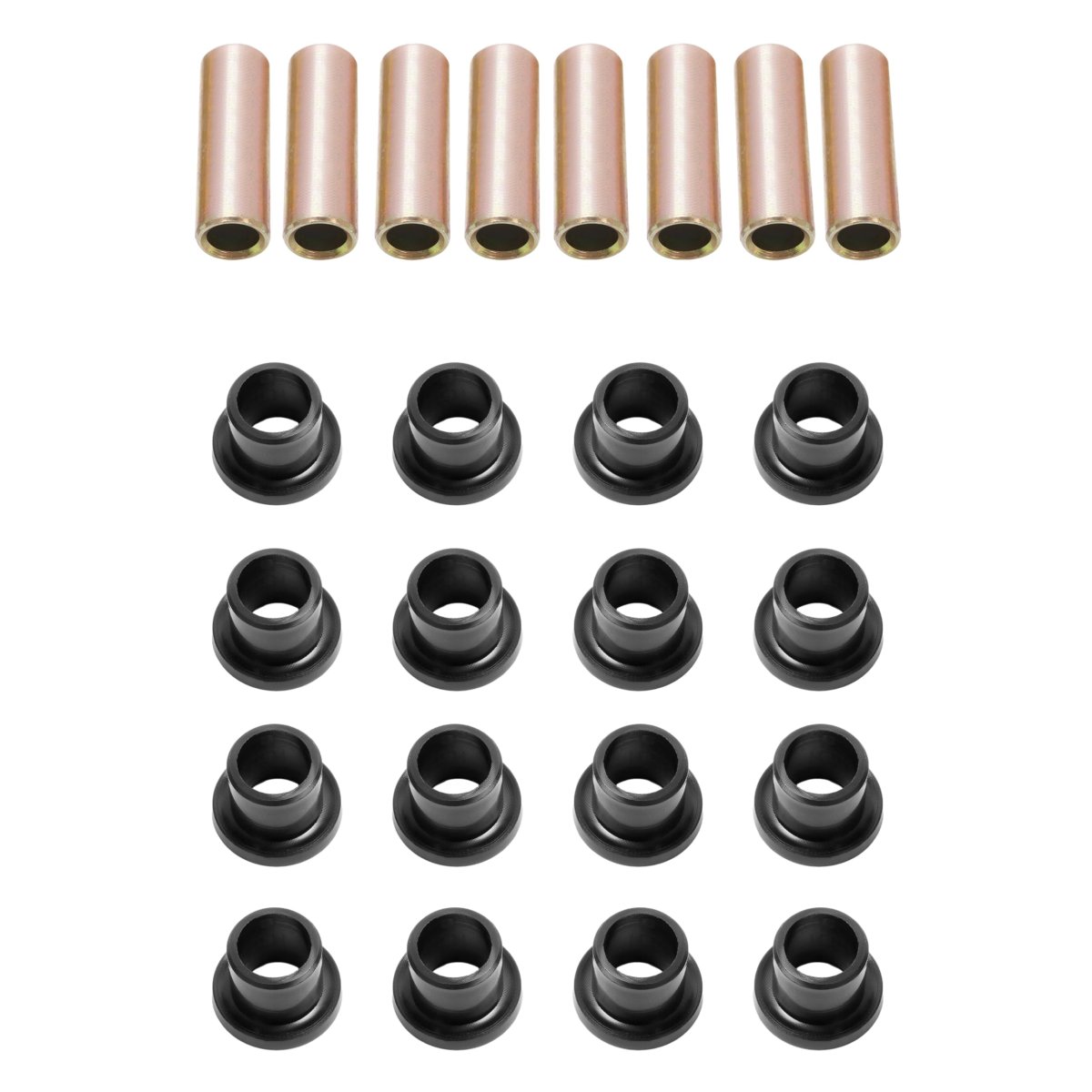 Compatibility: This A Arm Bushing Kit Compatible with 2003-2013 Can-Am Outlander 400; 2015-2017 Can-Am Outlander 450; 2007-2015 Can-Am Outlander 500; 2004-2005 Can-Am Outlander 330/400; 2006-2013 Can-Am Outlander 650; 2006-2012 Can-Am Outlander 800; 2008-2016 Can-Am Renegade 500; 2007-2012 Can-Am Renegade 800; 2002-2004 Can-Am Quest; 2008-2015 Can-Am DS 450; 2001-2005 Can-Am Traxter. Replacement for AAB-CA-001. Strong Material: The Kit is made of automotive grade high-quality Steel+Nylon materials, stable and reliable, not easy to wear and age. The Galvanized surface is not easy to rust, which enables a longer lifespan. Product Function: Bushing kits are excellent upgrades for worn stock components, significantly improving ride quality. They help minimize chassis vibrations and road noise, enhancing overall comfort. Additionally, these kits reduce friction between vehicle parts, leading to smoother handling and improved performance. By replacing old, worn bushings, you can achieve better stability and responsiveness in your vehicle. Package Include: You will receive 16 bushings and 8 sleeves(Cooper Tone) as picture shown. Installation: Direct replacement, professional installation is recommended. Instruction is NOT included.Other fine products