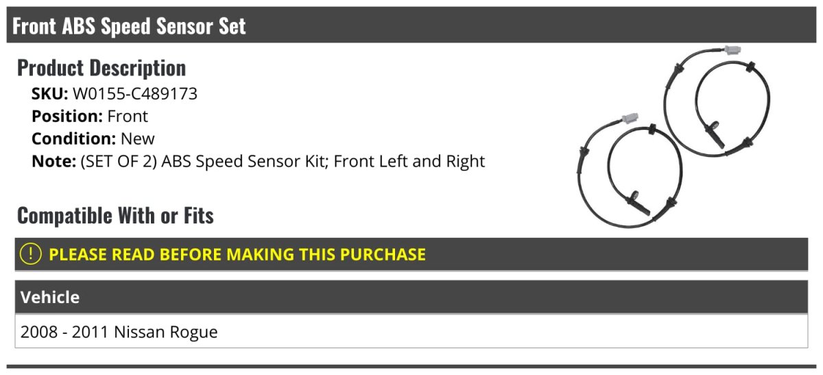- Front Abs Speed Sensor Set Of 2 For 2008-2011 Nissan Rogue