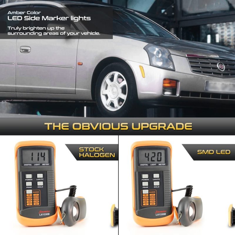 - Front Amber Full Led Side Marker Lights Lamps For 2003-2007 Cadillac Cts Clear Lens Chrome Housing Driver Passenger Pair Set