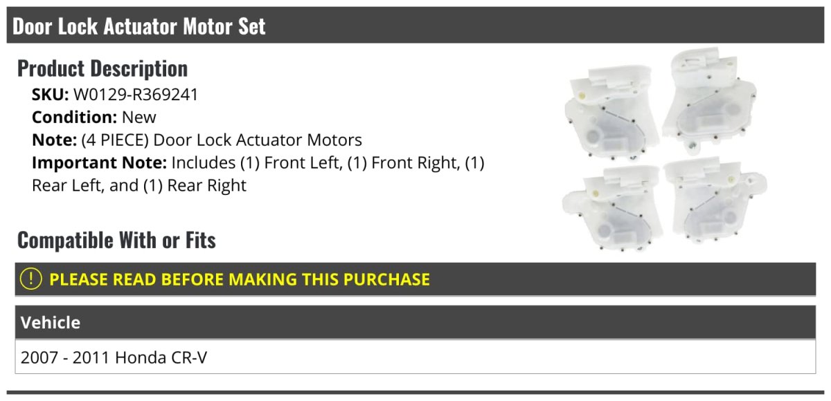 - Front And Rear Door Lock Actuator Motor Set Of 4 For 2007-2011 Honda Cr-v