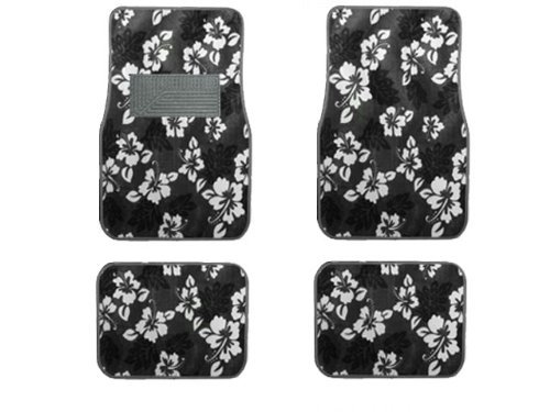 • Front And Rear Hawaii Hibiscus Carpet Floor Mats Charcoal Black