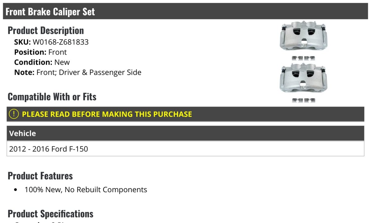 - Front Brake Caliper Set Of 2 Compatible With 2012-2016 Ford F-150