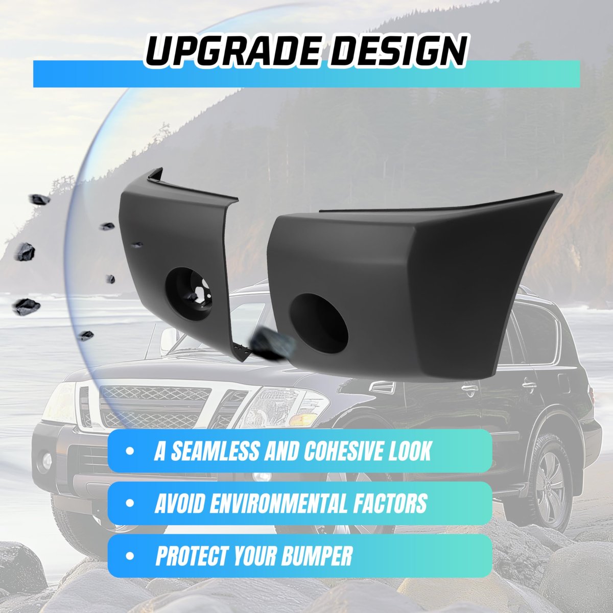 - Front Bumper End Cap Extension Filler For 2004-2007 Nissan Titan Armada Pathfinder Armada Le Se Xe 622347s300 622357s300