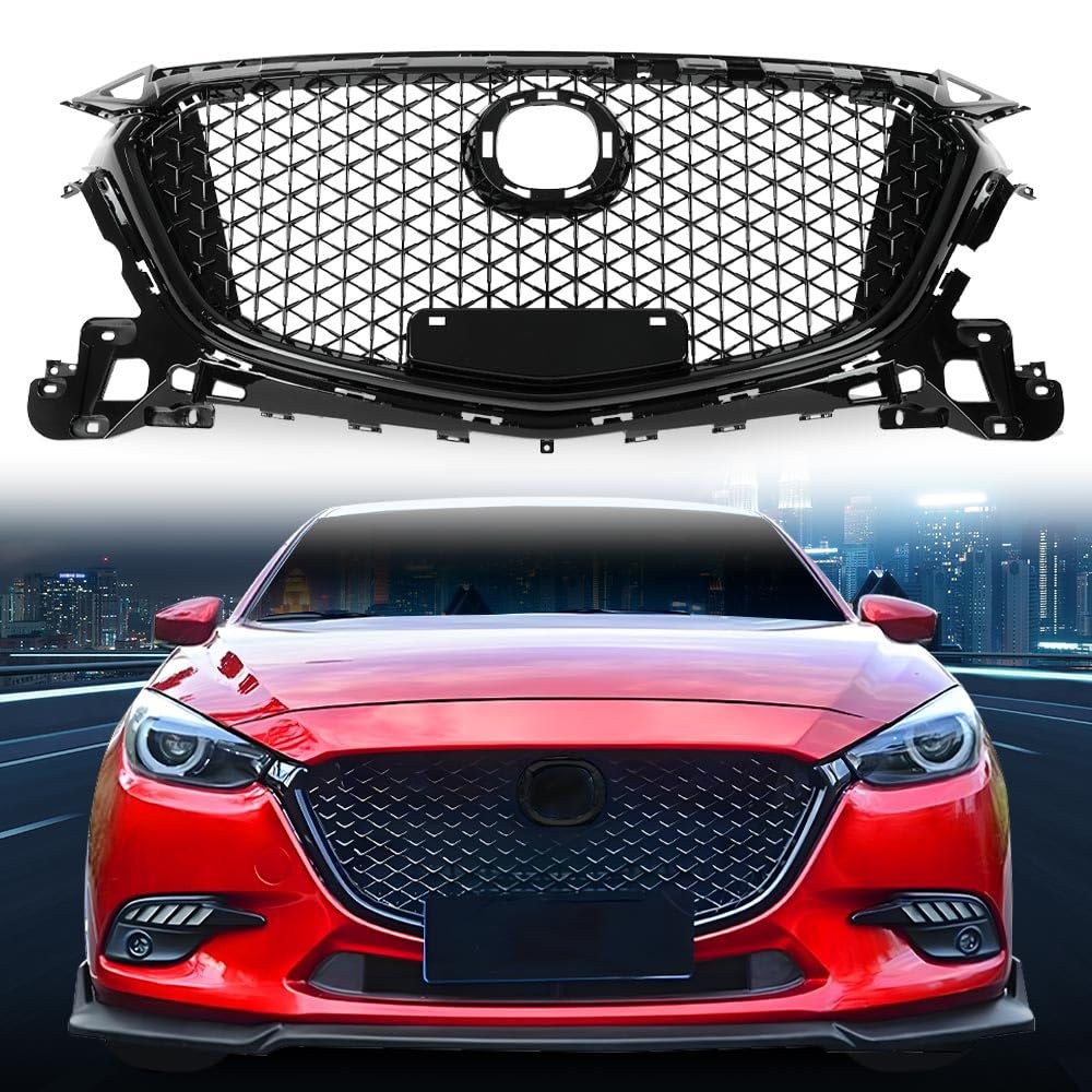 Application: Front Bumper Grille Grill Honeycomb Glossy Black.Fit For Mazda 3 Axela 2017 2018 2019. Premium material: The products are made of ABS materials, which are durable, reduce the frequency of replacement and have a long service life.. OE Standard - Heavy-duty aftermarket replacement at an affordable price. Superior Durability and Impact Resistance.Meets the Original Equipment (OE) standards, ensuring replacement fit just like the original.. Better Air Flow - Front Bumper Grille provides better airflow to the radiator to help the cooling process better. And it can give your car a stylish off-road look.. Installation - Manufactured according to factory specifications. If you have no installation experience, professional installation is highly recommended..Other fine products