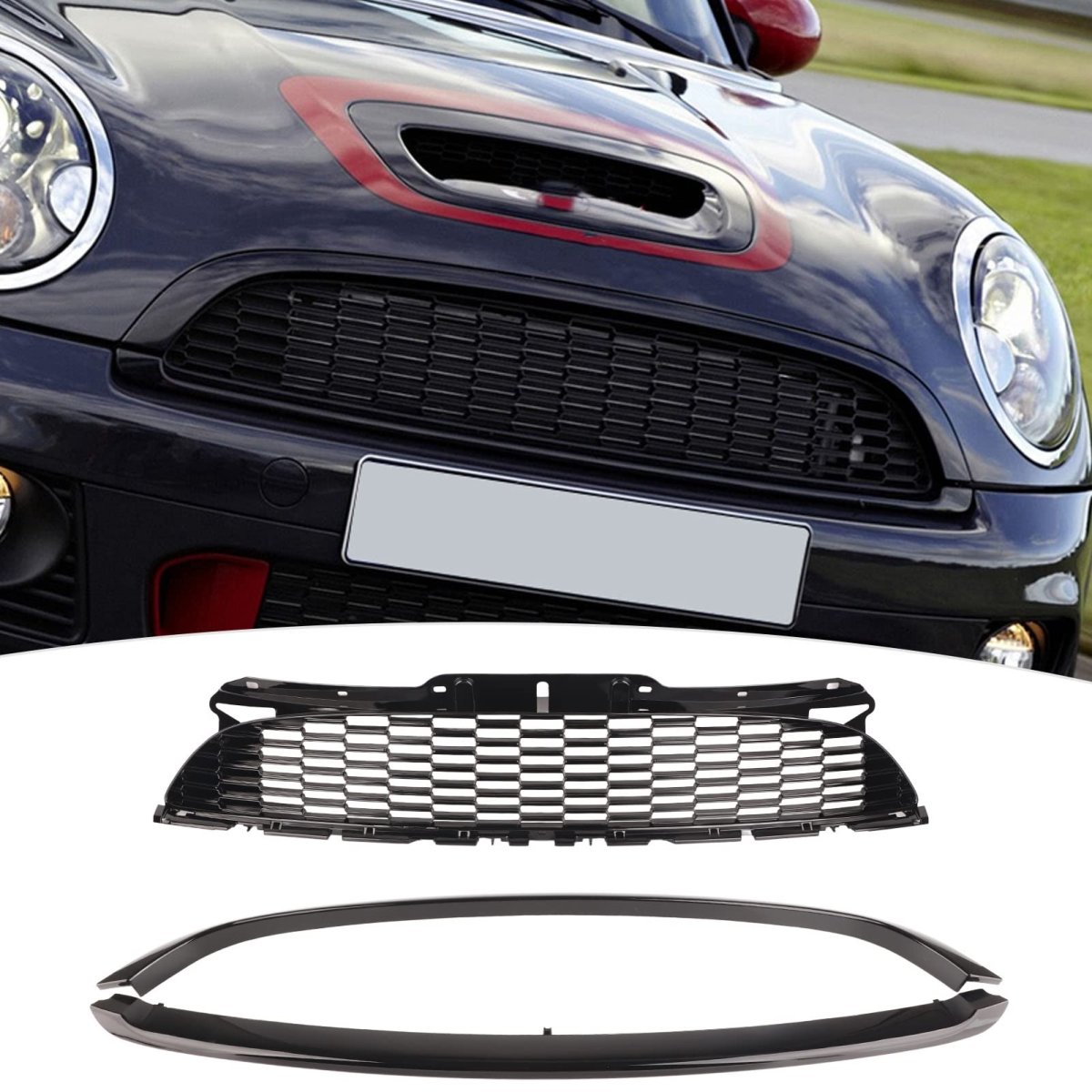 Perfect Fitment: Our Front Bumper Grille Guard is specifically designed to fit R55 5-Door (2008-2014), R56 3-Door Hatchback (2007-2013), R57 2-Door Convertible (2009-2013), and other compatible models. With its precise fitment, you can trust that this grille guard will seamlessly blend with your car's front bumper, giving it a polished and professional look. Sleek Glossy Black Design: Our front hood molding grille surround cover trim kits are crafted with a glossy black finish. With its sleek design, this mesh grille will give your car a modern and sophisticated look. The upper and lower frames are also sprayed with glossy black paint, and a protective layer is applied for long-lasting durability. Enhanced Appearance: Our Front Bumper Grille Guard not only adds a touch of sportiness to your car, but also enhances its overall appearance. Designed to fit perfectly with R55, R56, R57, R58, and R59 Standard models, this grille guard covers your front bumper and adds a stylish element to your vehicle. Easy Installation: Installing our Front Bumper Grille Guard is a breeze. With snaps on the back, it can be easily replaced without the need for any special tools or professional assistance. This ensures a hassle-free installation process and greatly enhances stability, so you don't have to worry about it falling off when washing your car. Reliable Protection: Our grille guard offers more than just a stylish appearance. It serves as a protective barrier against debris and other foreign objects that could potentially damage the internal parts of your car. Additionally, it provides better heat dissipation performance, ensuring your engine stays cool during those long drives.Other fine products