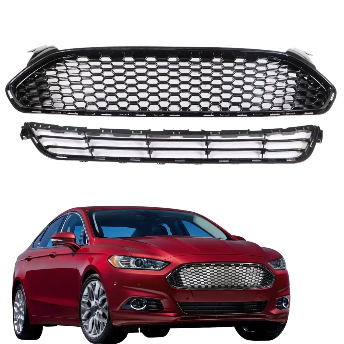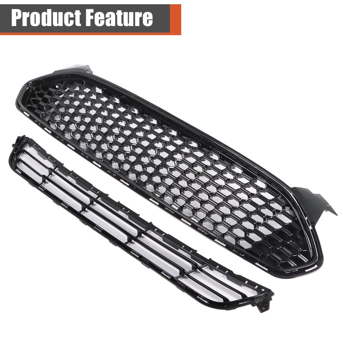 - Front Bumper Grille Upper And Lower Black Honeycomb 2pcs Replacement For Fusion 2013-2016 Ds7z-8200-ba