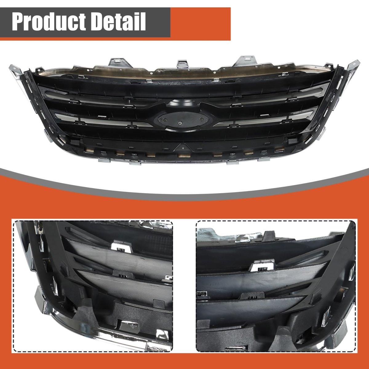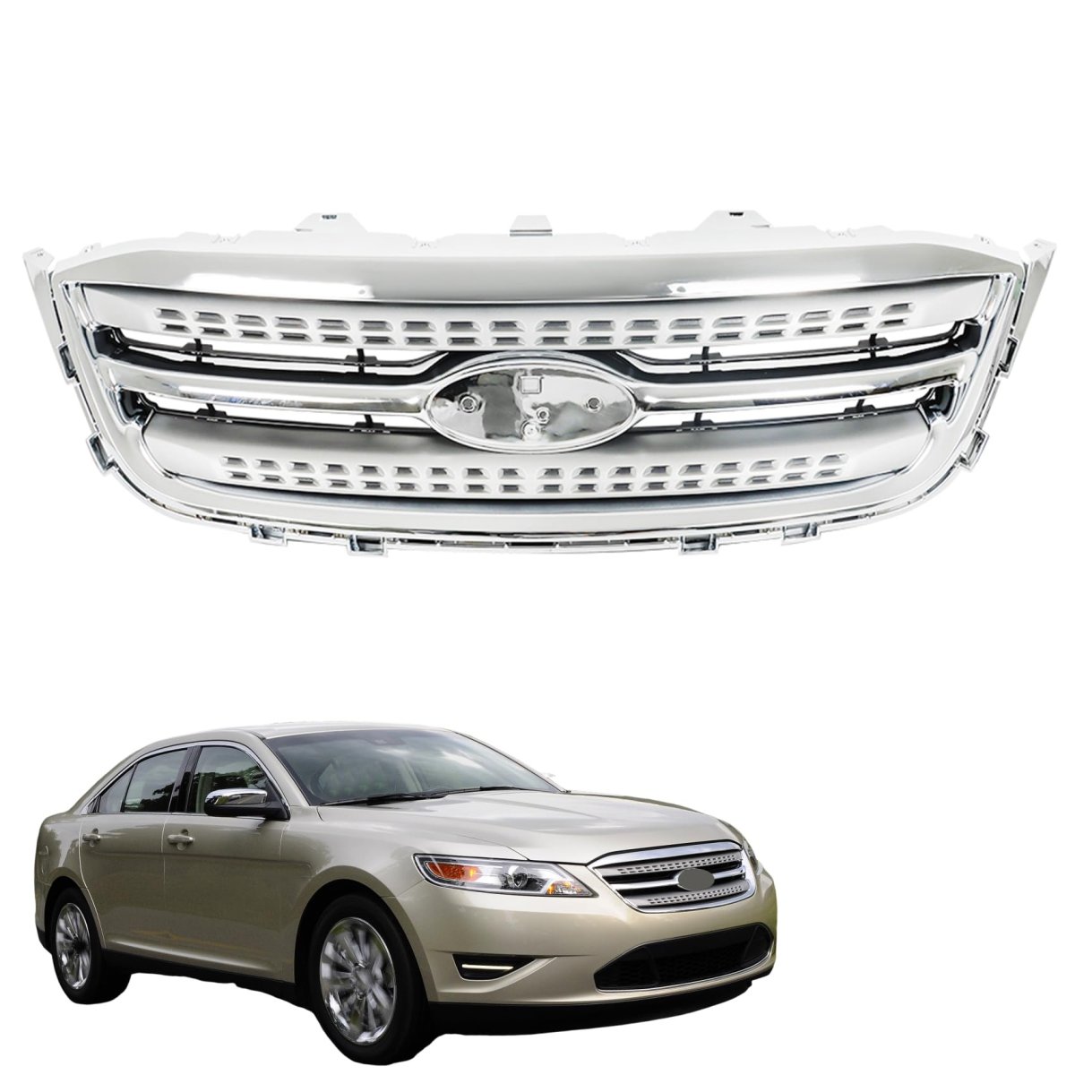 - Front Bumper Grille Upper Silvery Grey With Chrome Molding Frame Mesh Replacement For Taurus 2010 2011 2012
