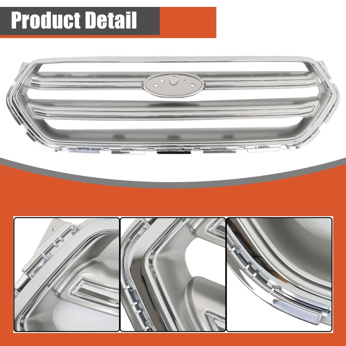 - Front Bumper Grille Upper Silvery Grey With Chrome Molding Trim Frame Replacement For Escape 2017-2019 Gj5z8200b