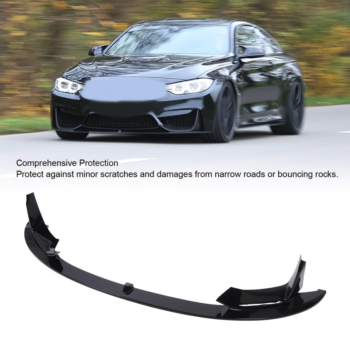 [Sturdy] Made of high strength abs plastic, this front bumper lip splitter provides long-lasting use in all weather conditions.. [Sporty and Aggressive Look] The glossy black finish adds a touch of style to your vehicle, enhancing its appearance.. [Easy Installation and Long-lasting] Comes in four pieces for easy installation, with coating for a refreshed and long-lasting look.. [Enhanced Driving Experience] Improves handling and aerodynamic performance, reducing fuel consumption for a better driving experience.. [Protects from Scratches and Damages] Cover your car from scratches and damages caused by rough roads, rocks, and other obstacles..Other fine products