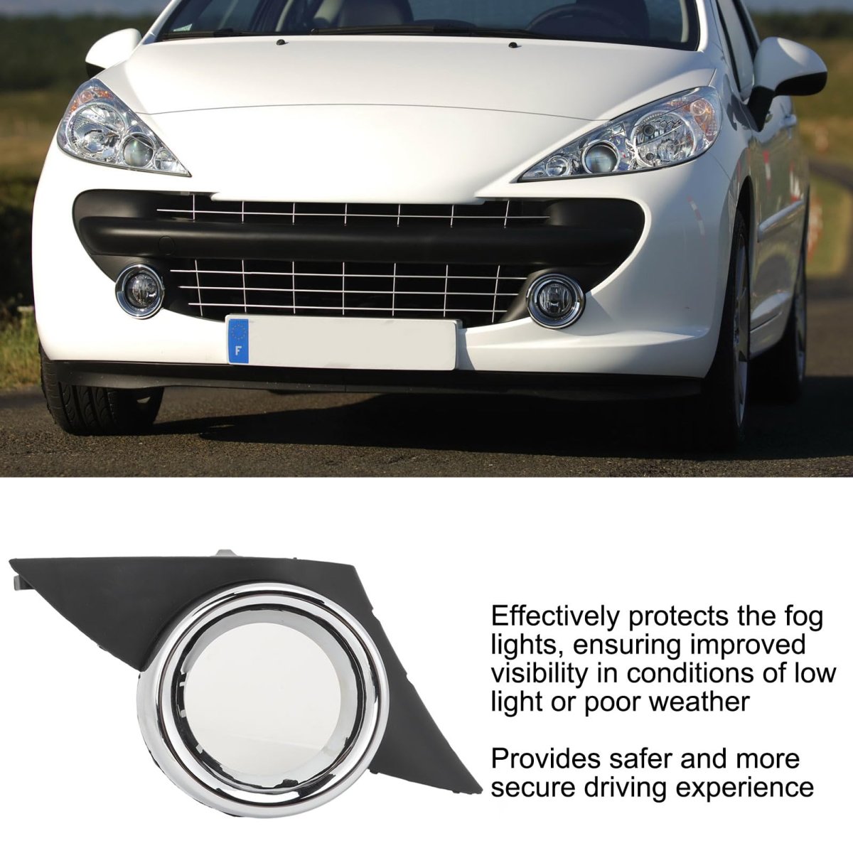 - Front Bumper Lower Fog Light Grill With Chrome Lamp Surround Bracket Frame Cover Lights For 207 Sport 2006 To 2009 Front Right