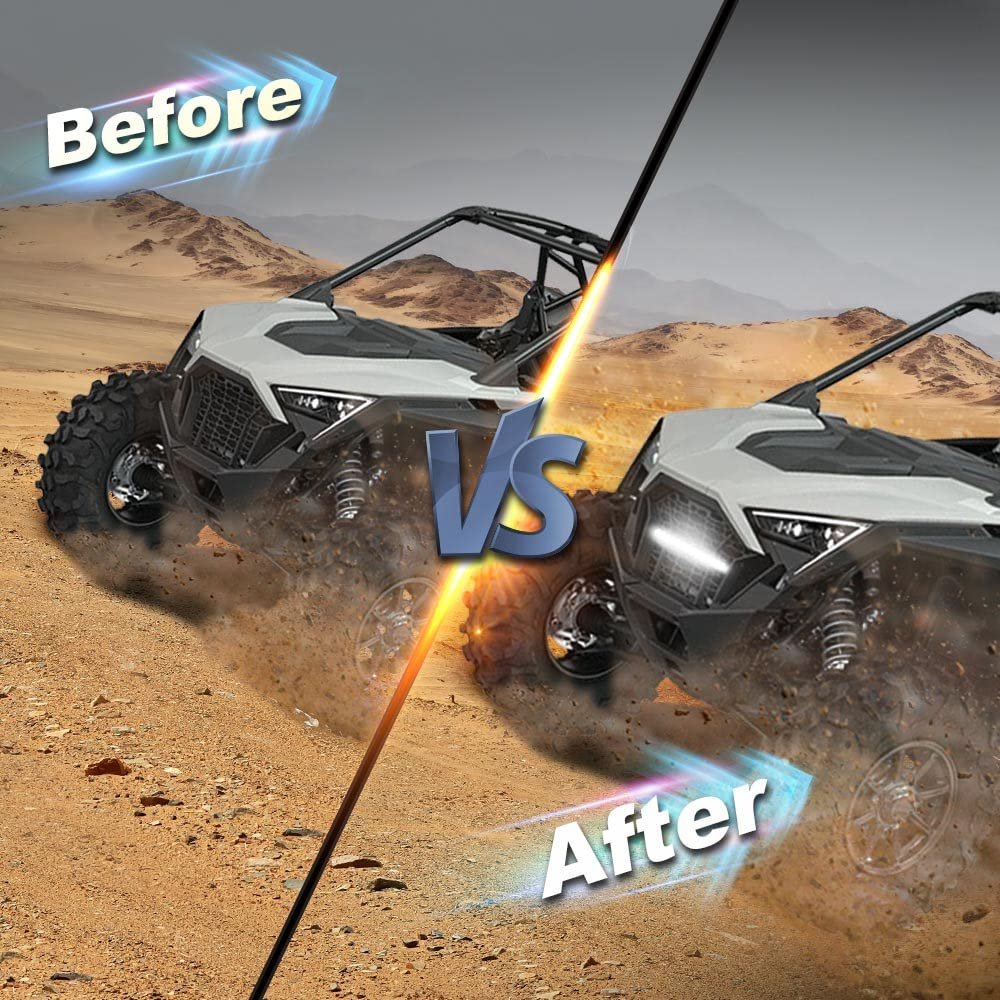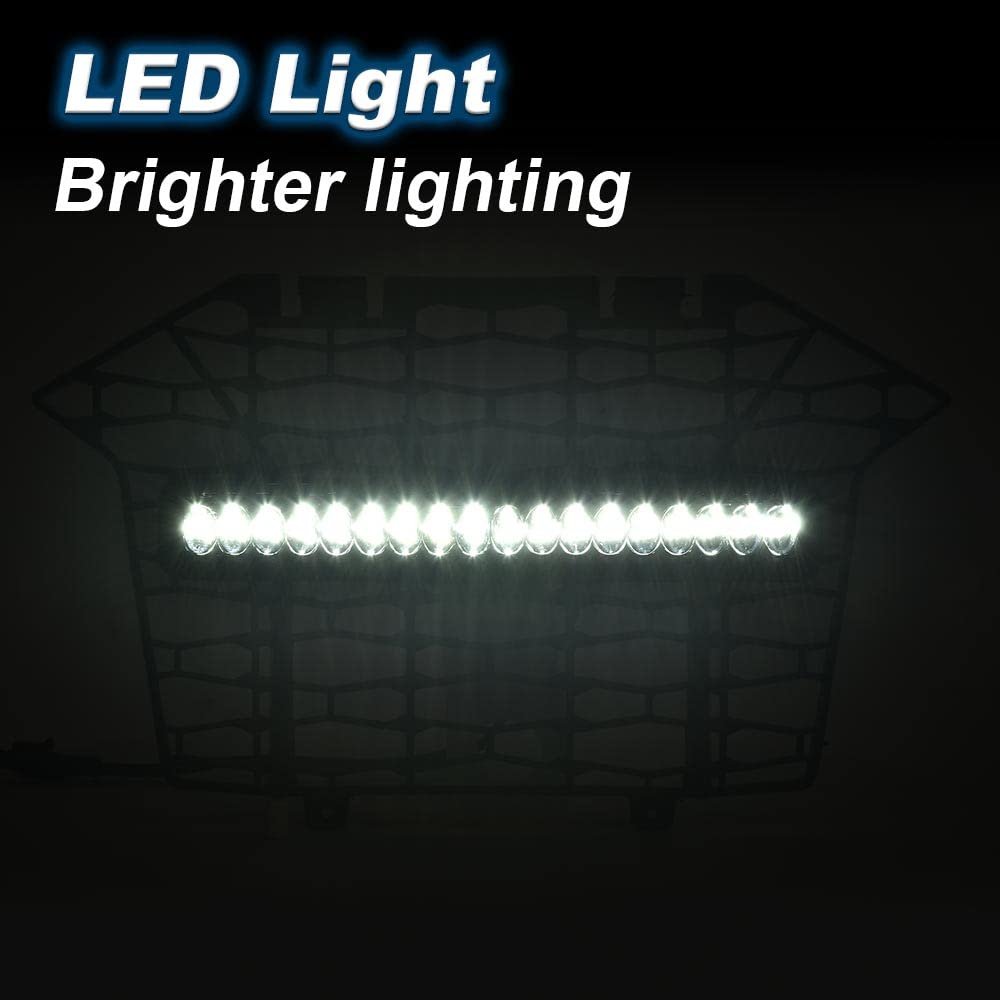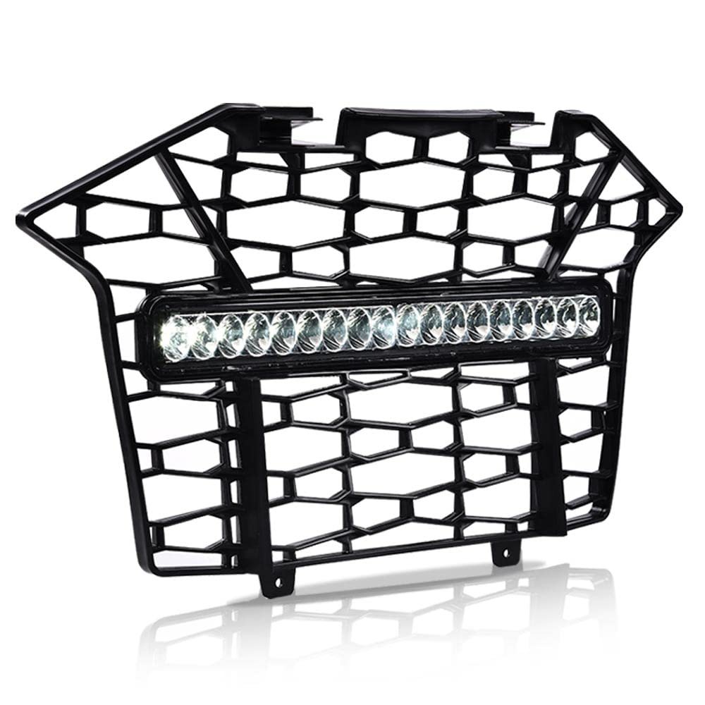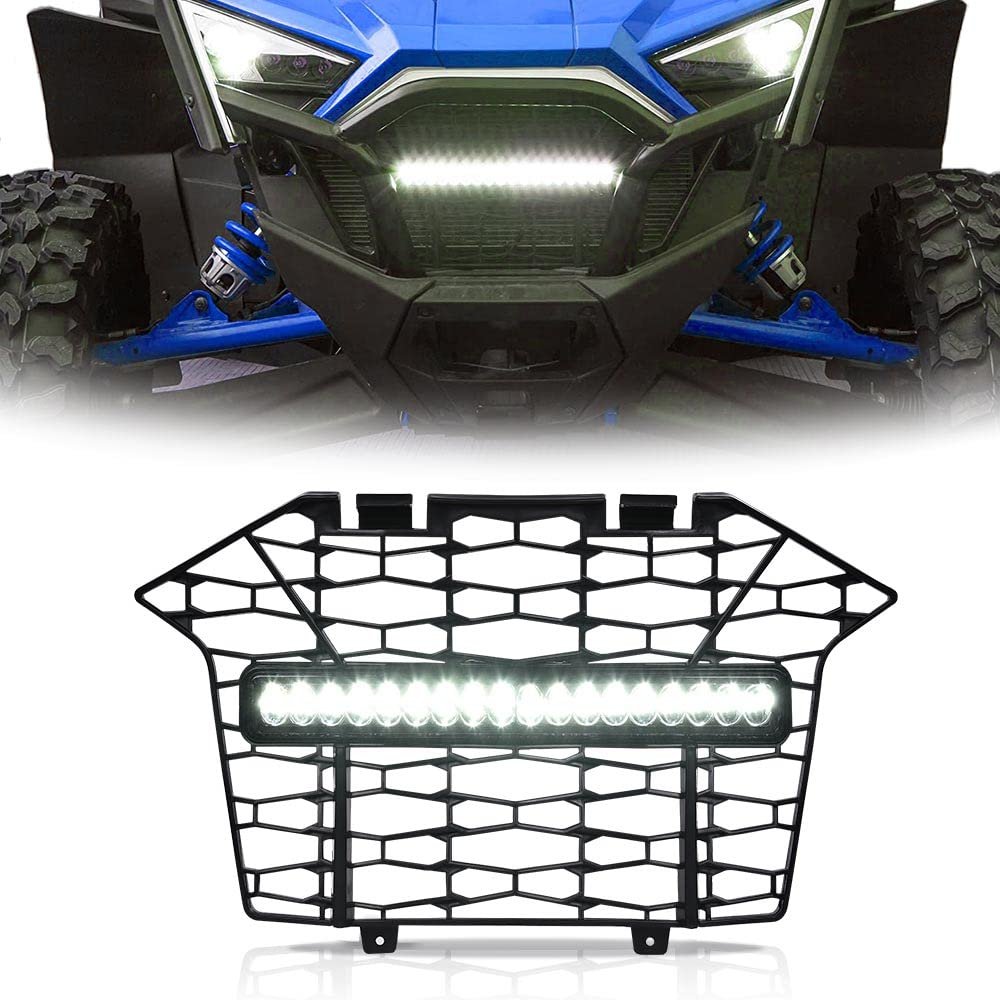 Compatibility - Compatible with Polaris RZR PRO XP 2020 2021 2022 2023/Compatible with Polaris RZR PRO XP Premium 2020 2021 2022 2023/Compatible with Polaris RZR PRO XP Ultimate 2020 2021 2022 2023.. Durable Material - Made of PP plastic with Shock and impact resistance, not easy to break. Greatly Protect the engine and radiator from collisions with branches or large objects.. Waterproof Design - Designed with WATERPROOF LED Light Bar which is the unique design differs from other normal grilles on the market.. Safety - Developed with durability and function, does not restrict air flow to vital operational components. Make sure the air intake and cooling functions work properly.Waterproof insulation glue at the interface for safety, can withstand high temperature up to 125 degrees.. Clear Vision&Easy installation - LED Light bar is able to provide you clear vision when you drive at night, with Wide irradiation range, great brightness.Easy to install, directly replace the OEM part.Other fine products