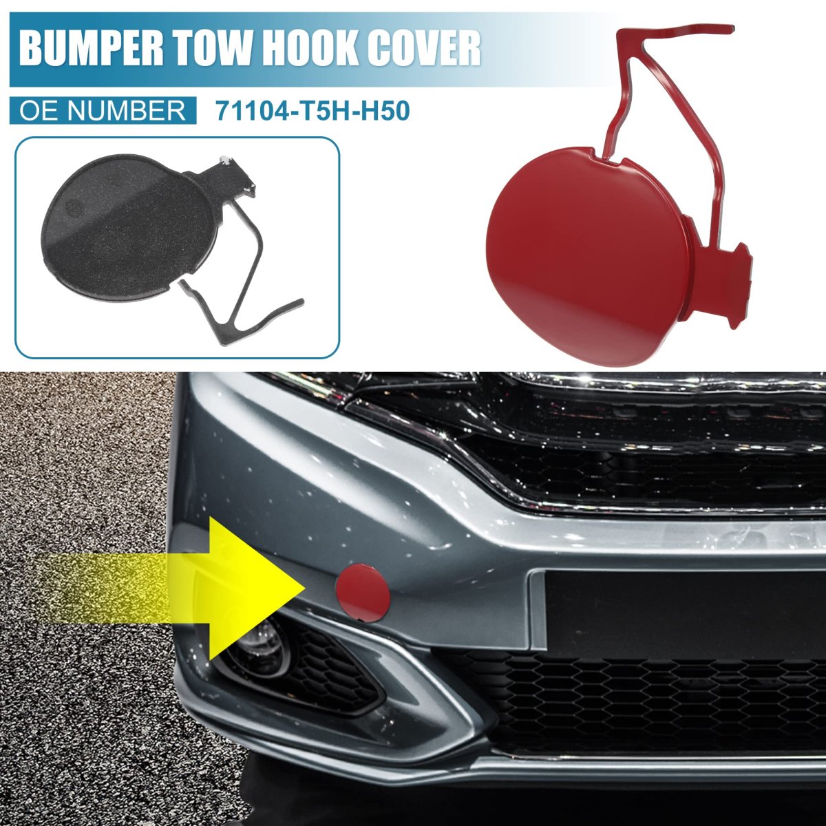 OE Number: 71104-T5H-H50; Placement on Vehicle: Front Bumper.. Good Replacement: Good replacement for the old or broken Front Bumper Tow Hook Cover. Match for the original one for the car.. Easy to Install: Direct replacement, easy installation. No modification or paint required, save time and paint cost.. Package Included: 1pc Red Tow Hook Cover.Other fine products